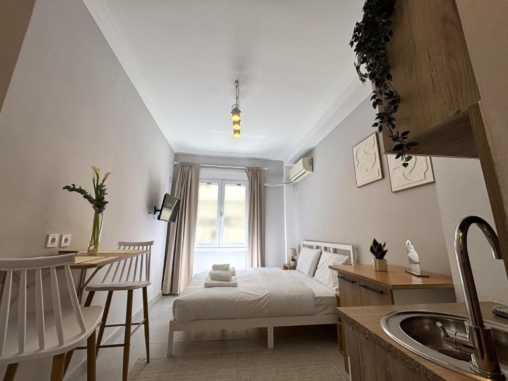 位於 6 樓的全新翻修單間公寓,毗鄰雅典絕對中心的 Syntagma 廣場,是短暫休息或在市區度過更多天數的完美選擇。陽光充足、安靜、大房間,配有雙人床、設備齊全的廚房、漂亮的陽臺,可享受陽光或一些優質時光,輕鬆前往巴士站,步行即可抵達雅典市中心的中央景點。非常適合情侶、專業人士入住。