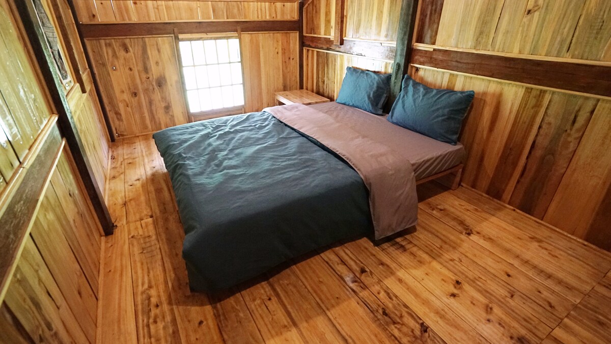 This house was built in 00s and renovated newly in 2023. It keeps itself the traditional local structure so like every old house in the village, there is no attached bathrooms directly to the room. This 15sqm room has a 10sqm spacious private bathroom, which is accessible via a very short hallway. There is a wardrobe, a desk, a hair dryer, a chair and a balcony with mountain and rice terrace view. There is a self serviced table with drinking water, tea and instant coffee free for guests.