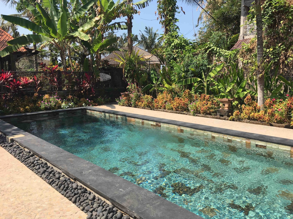 我們的房子坐落在香蕉和椰子種植園的中間,可欣賞稻田景觀。 距離著名的巴利亞海灘衝浪點僅5分鐘車程。 步行250公尺即可抵達海灘,欣賞Belong海灘的神奇風景,在甲板上觀賞鳥類,並在夜間欣賞星空的清晰景觀。