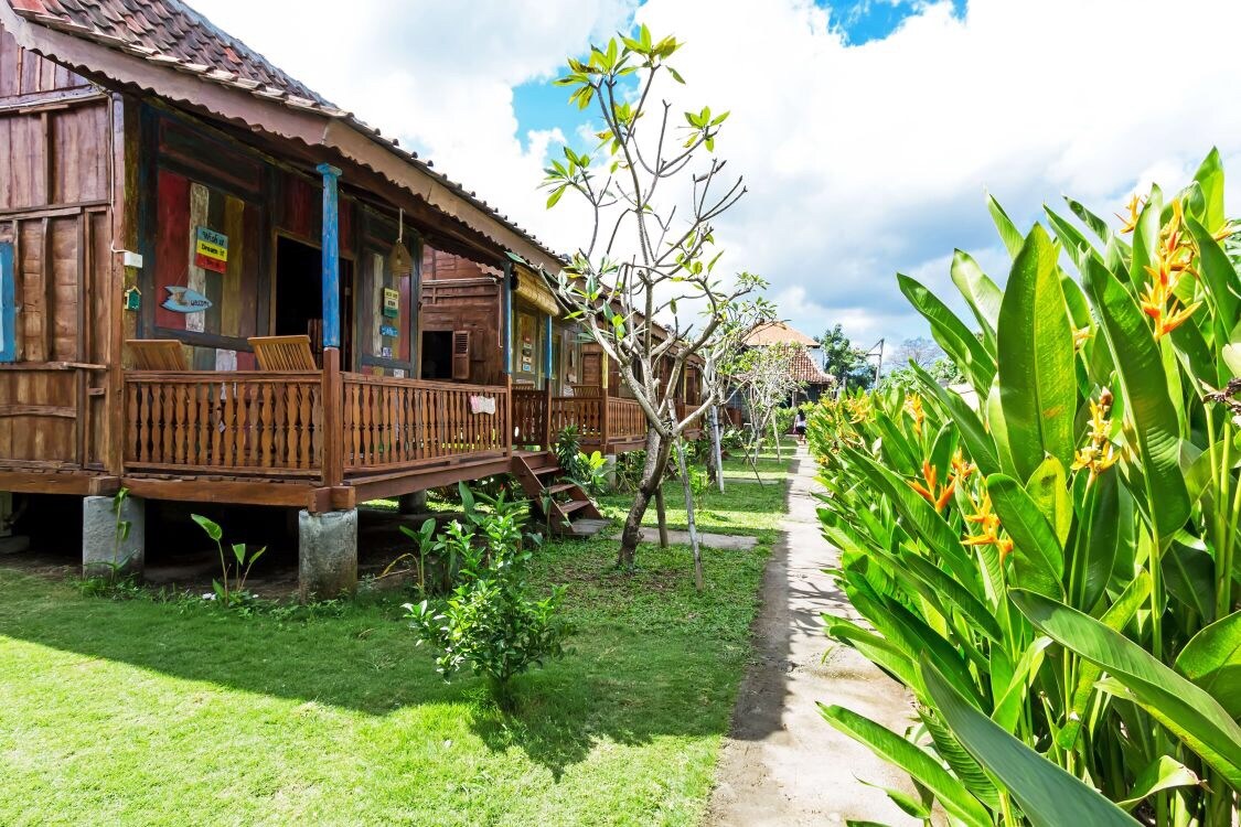 這棟蘇門答臘風格的木製海灘房屋非常簡單、放鬆,配備了您在峇裏島西部海灘住宿所需的一切設備。 這是一個單間公寓風格的設施,配有戶外廚房區域、傳統的峇裏島風格浴室和室外冷熱淋浴間,以及配有吊扇和蚊帳的雙人牀。 它有一個漂亮的戶外露臺,可以在花園中放鬆身心,步行僅需3分鐘即可抵達私人海灘。