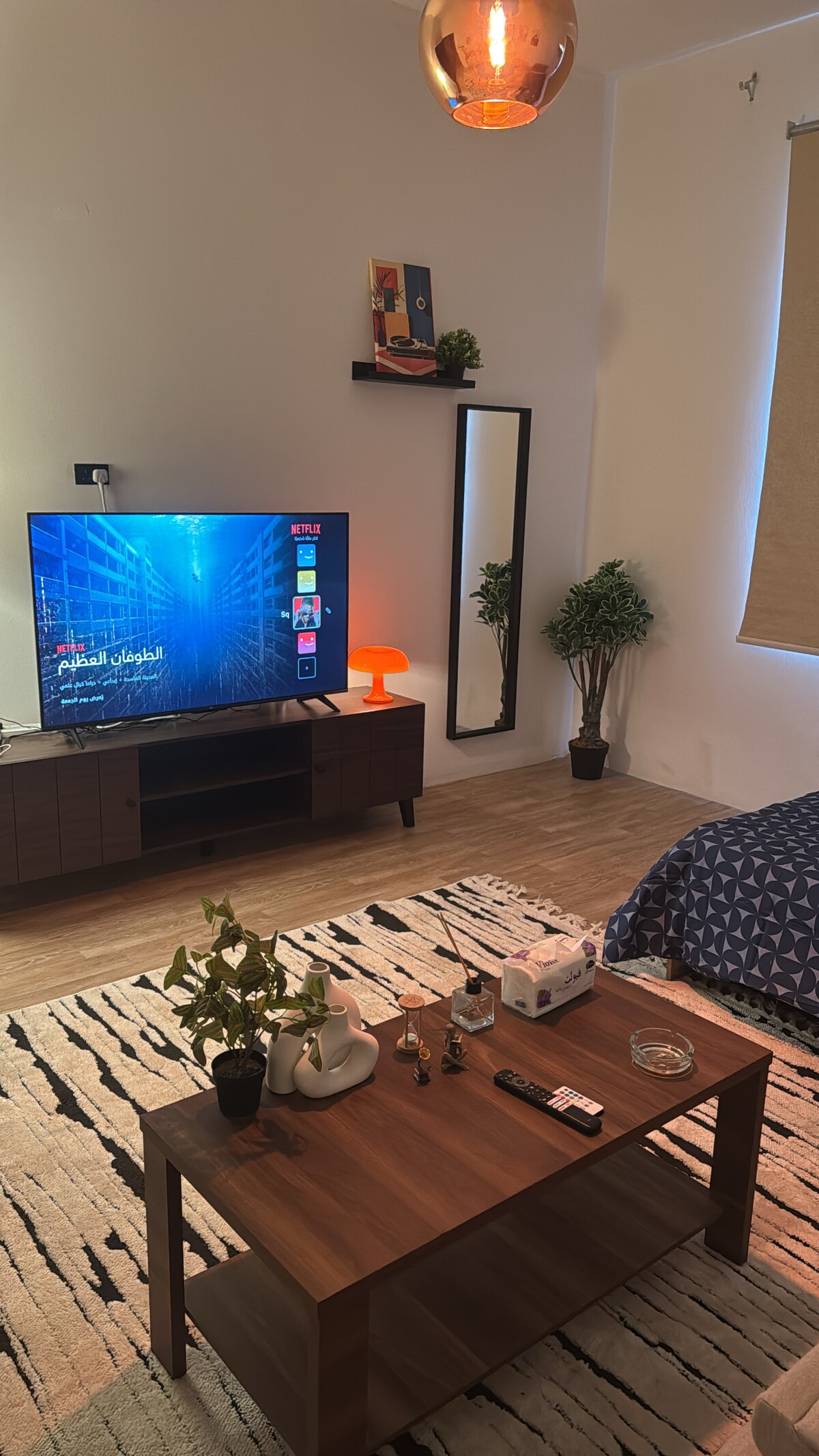 *與家人一起享受安寧與放鬆* 入住這間寬敞、優雅的單間公寓,距離塔布克國際機場僅 5 分鐘路程。 * 住宅配有可轉換成床的舒適沙發,以及可在 Netflix 和 Shahid 上觀看最佳電影和比賽的智慧電視。 *睡眠安排* 特別的大床、全新乾淨的枕頭。 提供免費行李運送服務,大樓前有免費停車位。 我們提供美國咖啡機和茶壺。 ^(我們提供自助入住功能)^