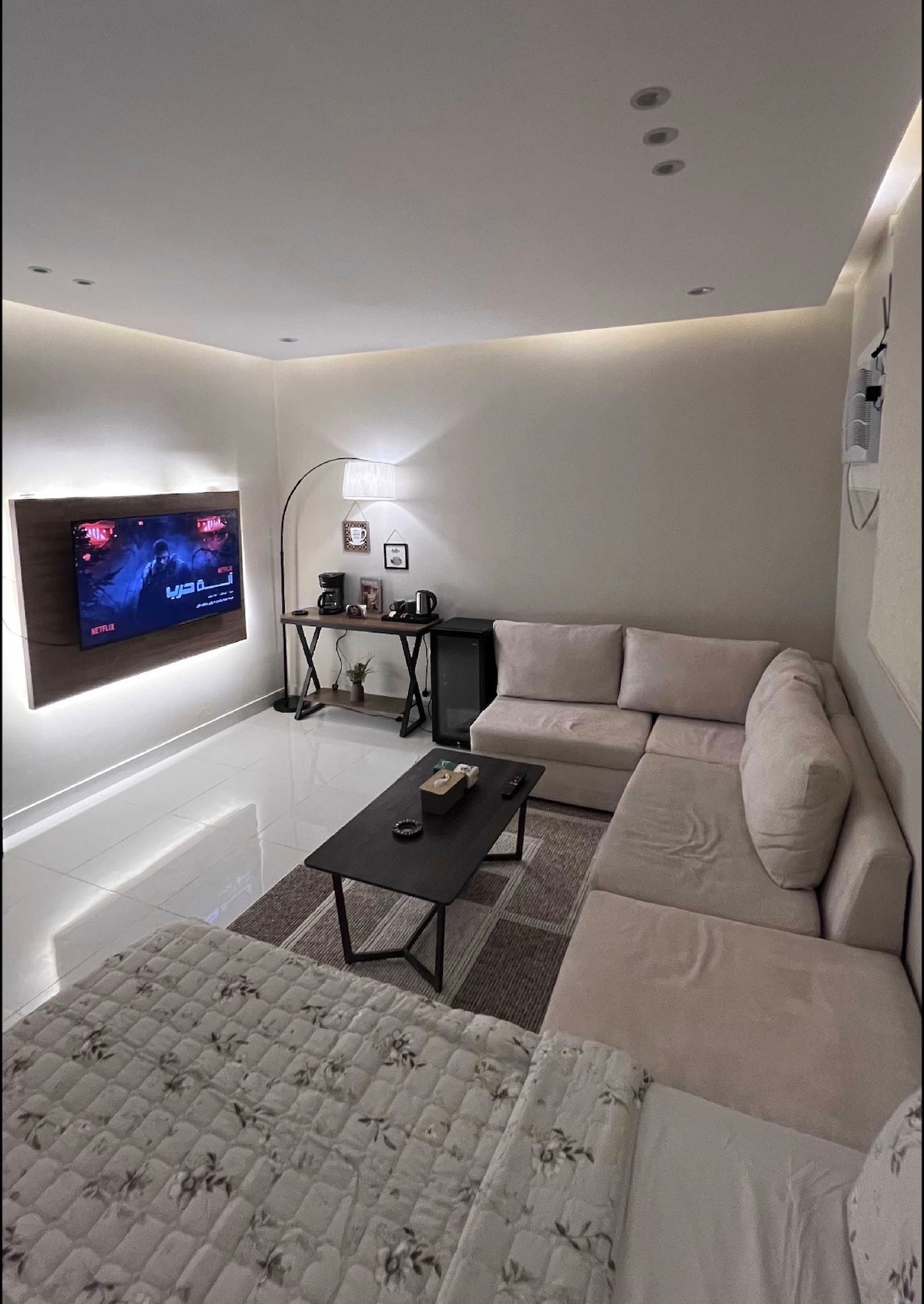 استرخ في هذا الأستوديو الأنيق والحديث وتمتع بانواع الترفيه المنزلي والدخول الامن والشخصي . يتكون الأستوديو من منطقة مفتوحه متوفر بها كنب و تلفاز و سرير كبير ومطبخ مفتوح ودورة مياة . وتتوفر كامل احتياجات المطبخ "مكرويف وآلة قهوة وشاي وطبخ وثلاجة وصحون وملاعق وكذلك تتوفر كآفة احتياجات الاستحمام " شامبو ، جل استحمام ، مناشف " و متوفر منصة نتفلكس وإنترنت يتسع المسكن الى إقامة ٣ أشخاص وتقع الشقة بالدور الاول ومتوفر خدمة نقل الحقائب ومتوفر مواقف خاصة للضيوف مجاناً .