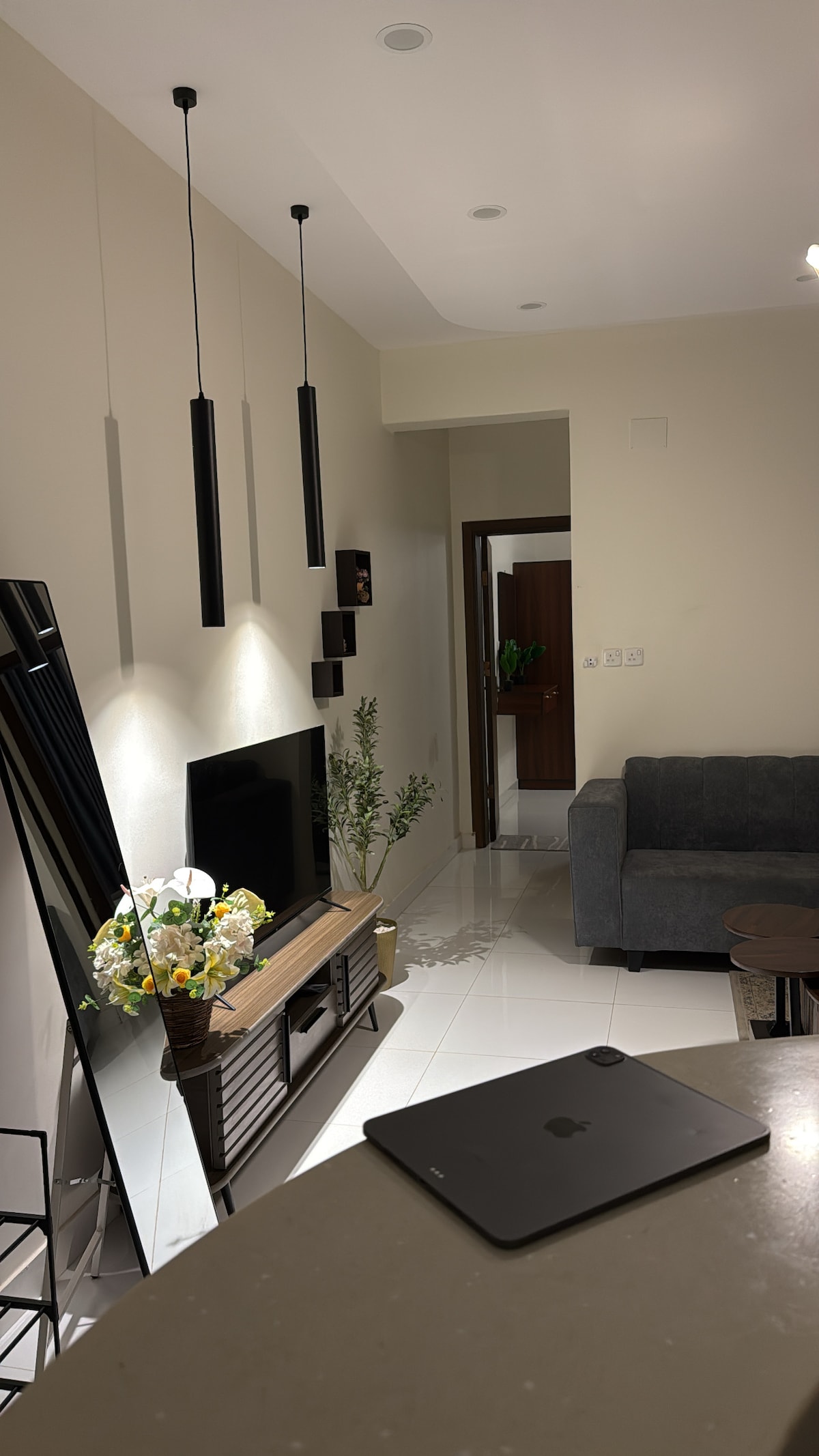 在這個安靜優雅的住所放鬆身心 新公寓 這個現代化的住所(三張床)可容納 5 人。 * 住宅配有整套廚房、洗衣機和智慧電視,可在 Netflix 和 Shahid 上觀看最佳電影和比賽。 提供免費網路服務和免費行李運輸,大樓後面還有免費停車位。 我們提供美國咖啡機和茶水壺。 ^(我們提供自助入住功能)^
