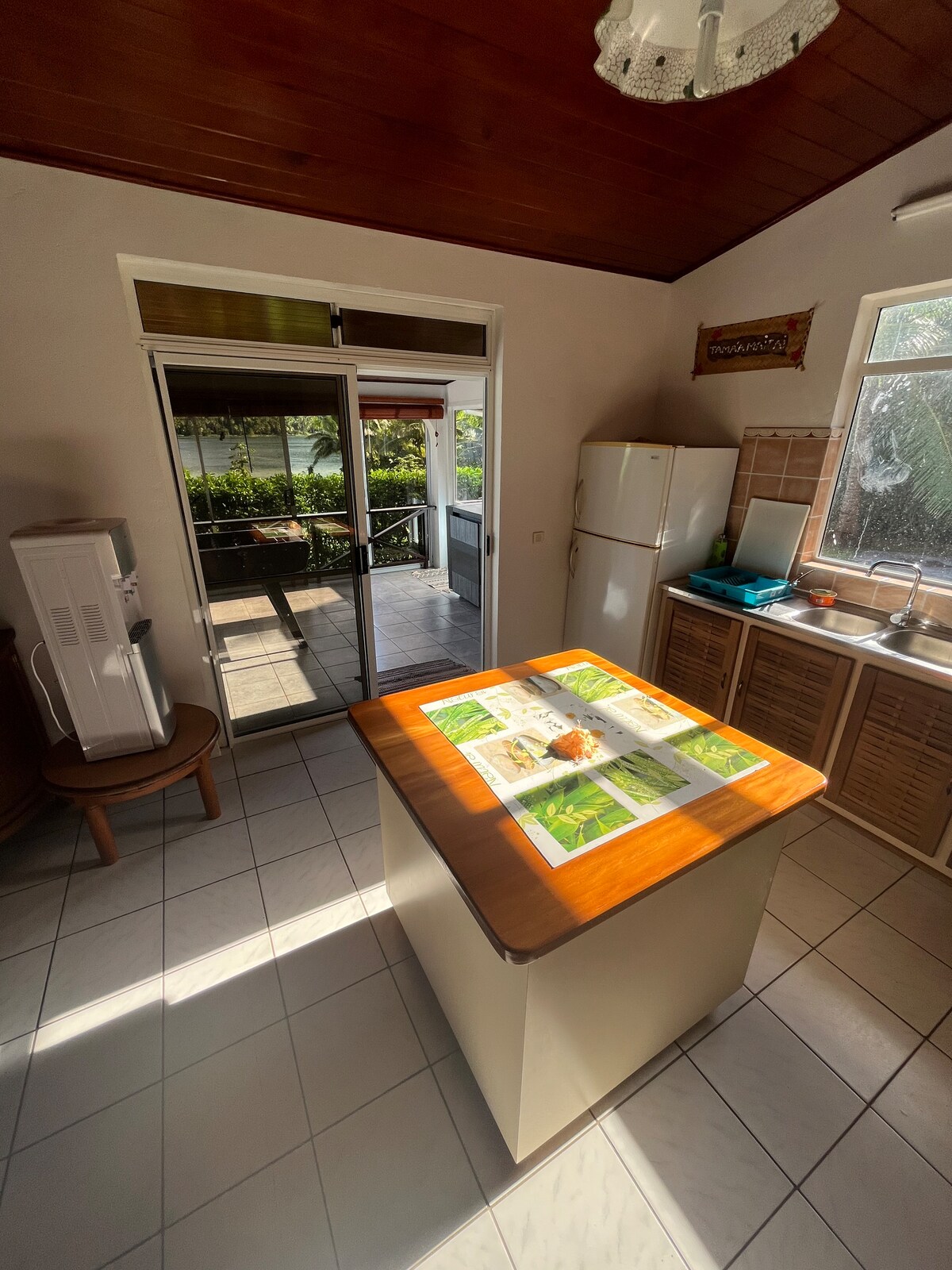 迷人的房子,有各種舒適設施,遠離道路,坐落在我們居住的花園房源的中心。 安靜的社區、友善的氛圍。 新近的住宿,有空調,設備精良,可直接前往海灘(40公尺),有私人海濱空間(桌子、長凳、躺椅、椅子)。非常適合游泳、浮潛的好去處。 美麗的日落。 開車5分鐘即可抵達Raiatea碼頭。 按摩需預約(付費活動)。 現場:1隻狗、3隻貓、3隻雞