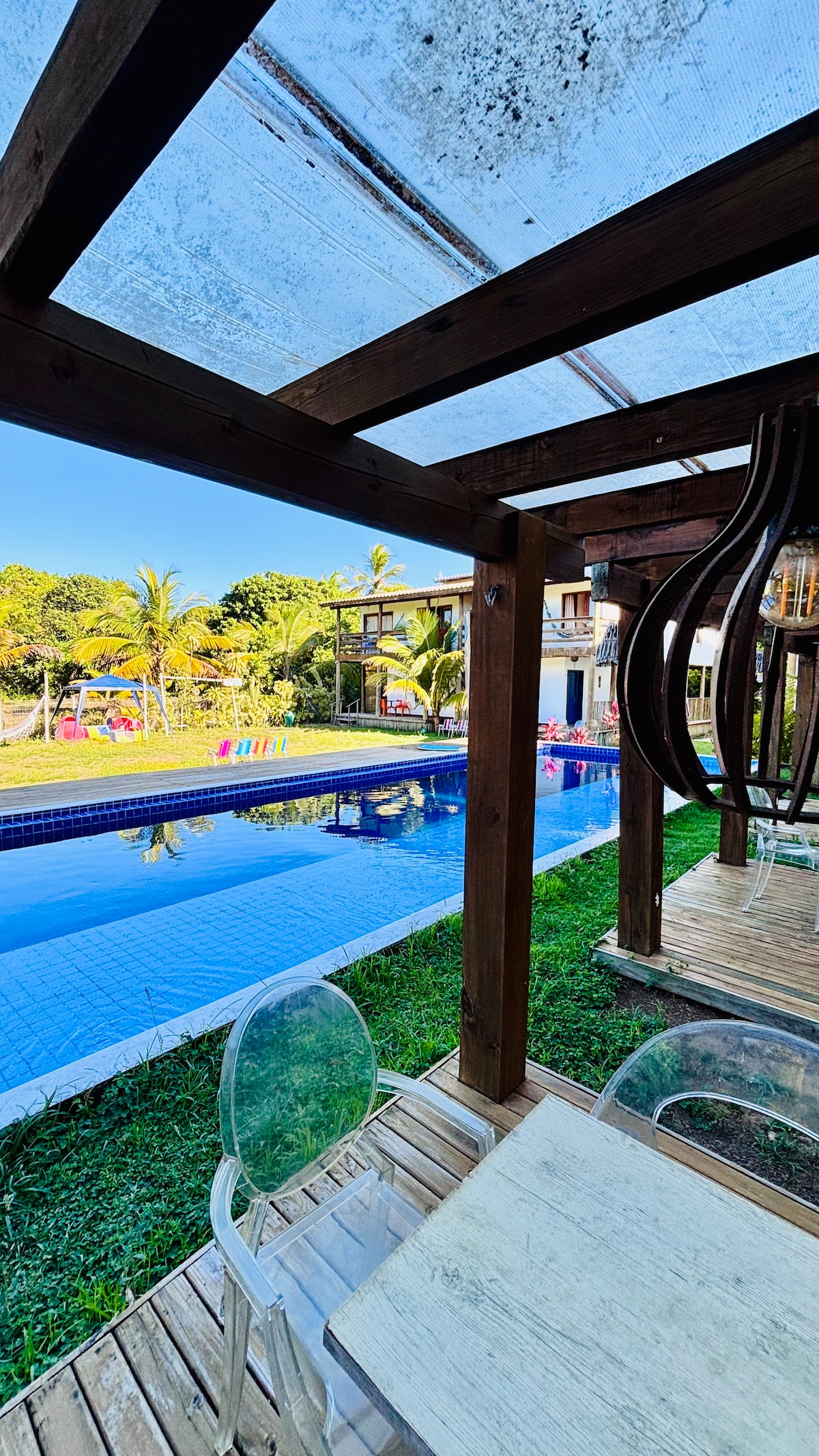 套房配有空調、WiFi、迷你吧、泳池、吊床和綠地 距離海灘5分鐘,距離巴拉格蘭德村900公尺。 最美海灘的天堂,其中包括Taipu de Fora的天然泳池、Ponta do Muta ,介於四輪摩託車和快艇之間。 我們有一個公共空間,配有爐子、冰箱、水槽和基本烹飪用具,供您自行準備早餐和其他餐點。 根據Airbnb和當地清潔規則,此房源提供所有清潔用品