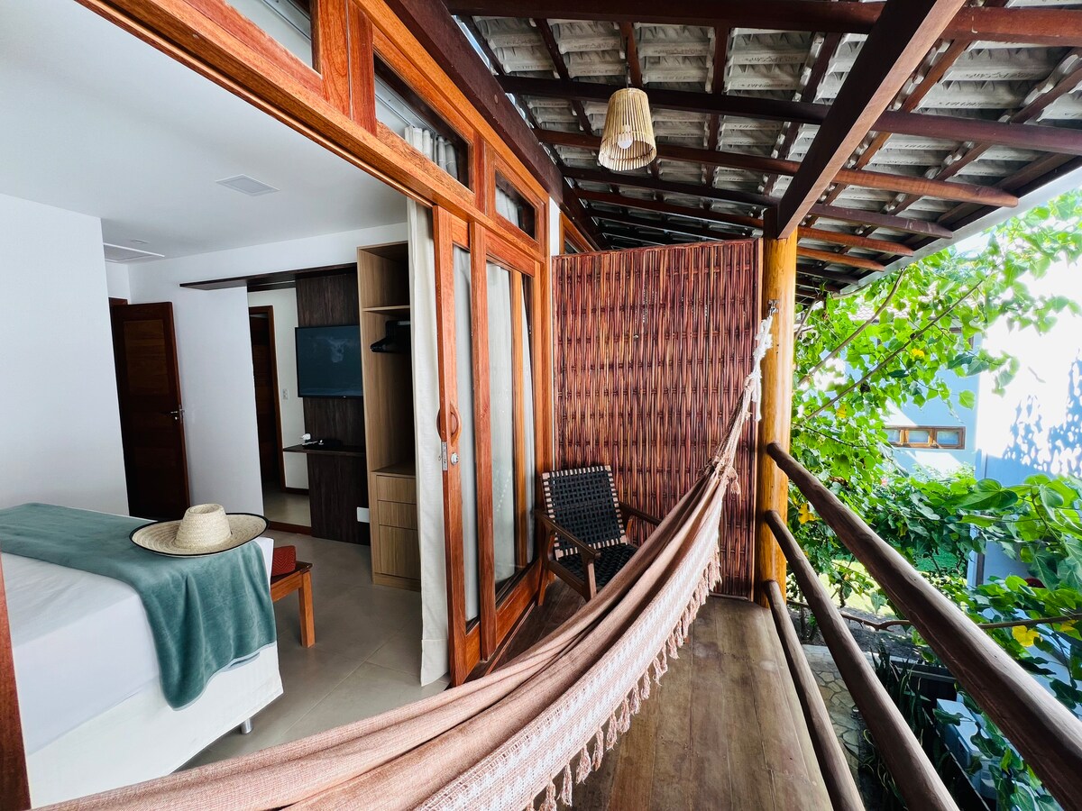 Venha se conectar com a natureza e viver momentos de incríveis na Península de Maraú. Nossa casa é rodeada por plantas nativas e um refúgio acolhedor e especial. São dois estúdios independentes, no mesmo formato, separados por parede dupla e com varandas privativas em lados opostos, garantindo total privacidade. O estúdio conta com ar-condicionado, cama de casal, cozinha equipada com utensílios básicos, banheiro e rede na varanda. Estamos a apenas 1 km da praia e a 5 km de Barra Grande.
