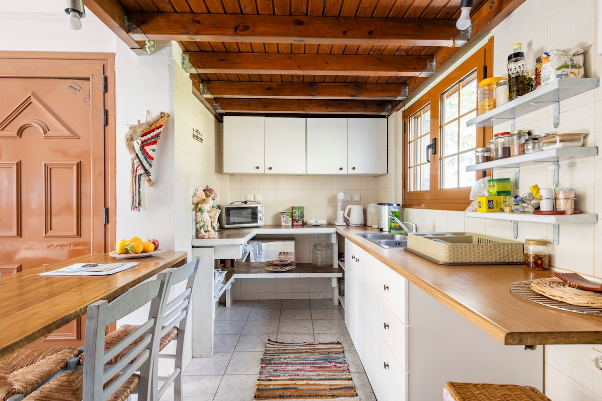 歡迎來到Meda House ,這是一個您可以輕鬆稱之為家的地方。非常適合團體或家庭入住,房子有2層樓,有不同的入口。我們的房子裝飾簡單,有2間臥室、2間浴室、1間客廳、設備齊全的廚房和2個陽臺,您可以欣賞美景...左邊可以欣賞雄偉的山脈,前面是愛琴海。春季和夏季,我們花園的橙子和檸檬花的香味會讓您的感官變得豐富...