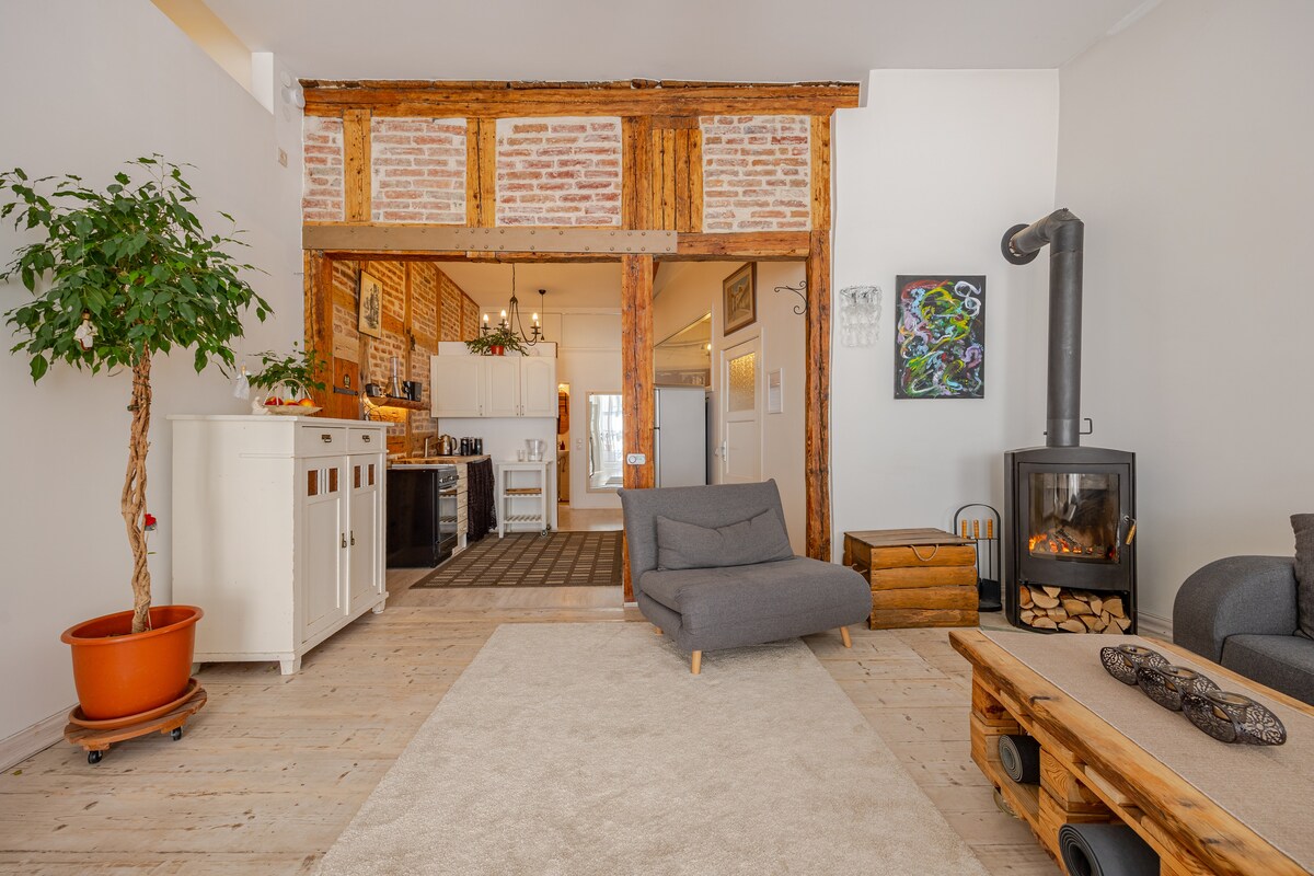 This spacious loft is on the top floor of a renovated wooden building located in the hip neighbourhood of Kalamaja. It is about a 20-minute walk from the Town Hall Square. This loft is ideal for one person, a couple or a family with small children. It is not suitable for 3-4 adults.