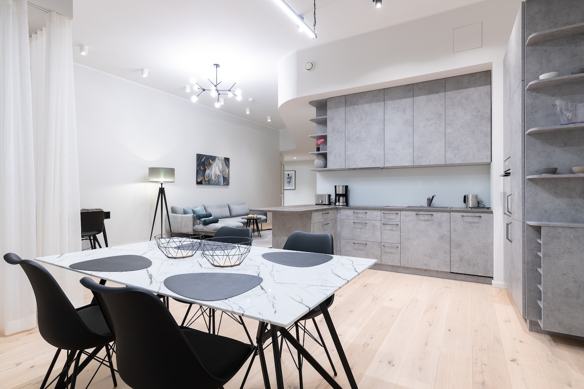 3 間臥室公寓位於新建築物內。位於市中心安靜的區域,靠近塔林舊城區。公寓附近有公共交通工具。步行 3 分鐘即可抵達大型購物中心。無鑰匙入口、床單、毛巾、洗手乳和洗髮精。免費WiFi。免費停車。 非常適合情侶、獨行冒險者、商務差旅人士、有小孩的家庭和大型團體(我們在一棟大樓內提供 5 間公寓)。 公寓有陽臺和桑拿房。