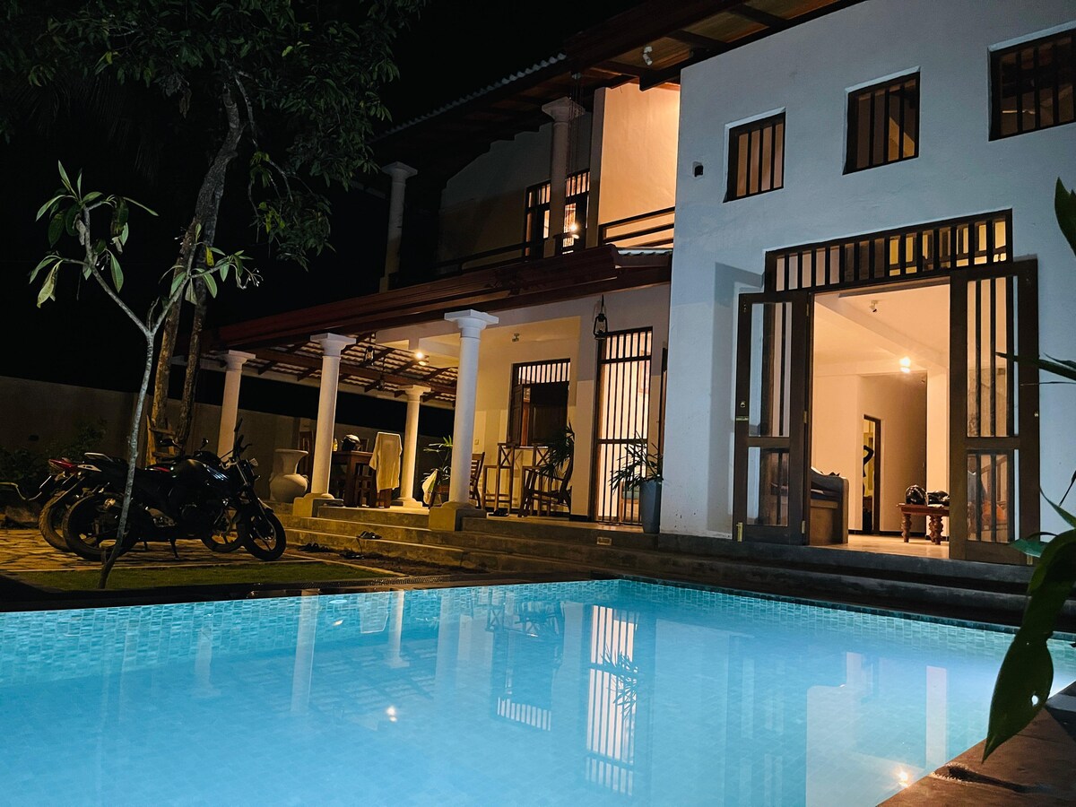 位於烏納瓦圖納山(Unawatuna hill)當地房屋之間的翻新2間臥室小屋。俯瞰樹木和美麗的烏納瓦圖納灣的迷人景觀。私人花園和泳池。步行10分鐘即可抵達海灘,短途嘟嘟車即可抵達烏納瓦圖納(Unawatuna)、塔爾佩(Thalpe)餐廳和加勒堡(Galle Fort)。如果房源不可訂,請查看我們的花園套房或隔壁的Mango House別墅,由同樣優秀的團隊提供服務。