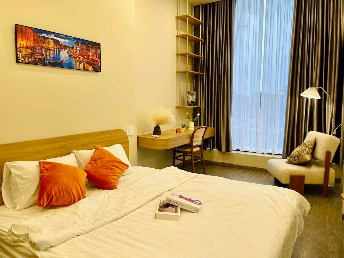-在夢幻的順化市中心,日復一日地上遊。 -我們打造了簡約、精緻和現代化的公寓。 門後面是一個舒適、溫馨、舒適的空間。 -家裡,不僅是「放鬆」、「享受」的地方 -公寓有2間臥室、客廳、廚房、廁所、浴室、馬車+晾衣間,配有bancon、門鎖、對講機系統,靠近電梯,方便移動。 -距離Trang Tien橋、西街、Vincom等地點僅5分鐘路程