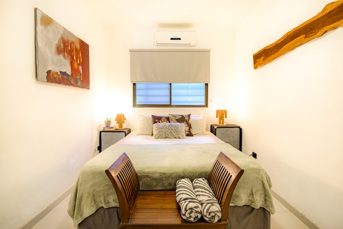 享受Villareal的舒適公寓,距離Tamarindo Beach僅5分鐘路程。 它設有2間配有空調的臥室、設備齊全的廚房、快速WiFi和房源內的私人停車位(無門或有遮蔽)。 房源提供有蓋按摩浴缸和燒烤區,僅與另一間公寓共用,營造出親密放鬆的氛圍。 非常適合尋求舒適、安靜和靠近海灘的家庭、情侶或數位遊牧民族。