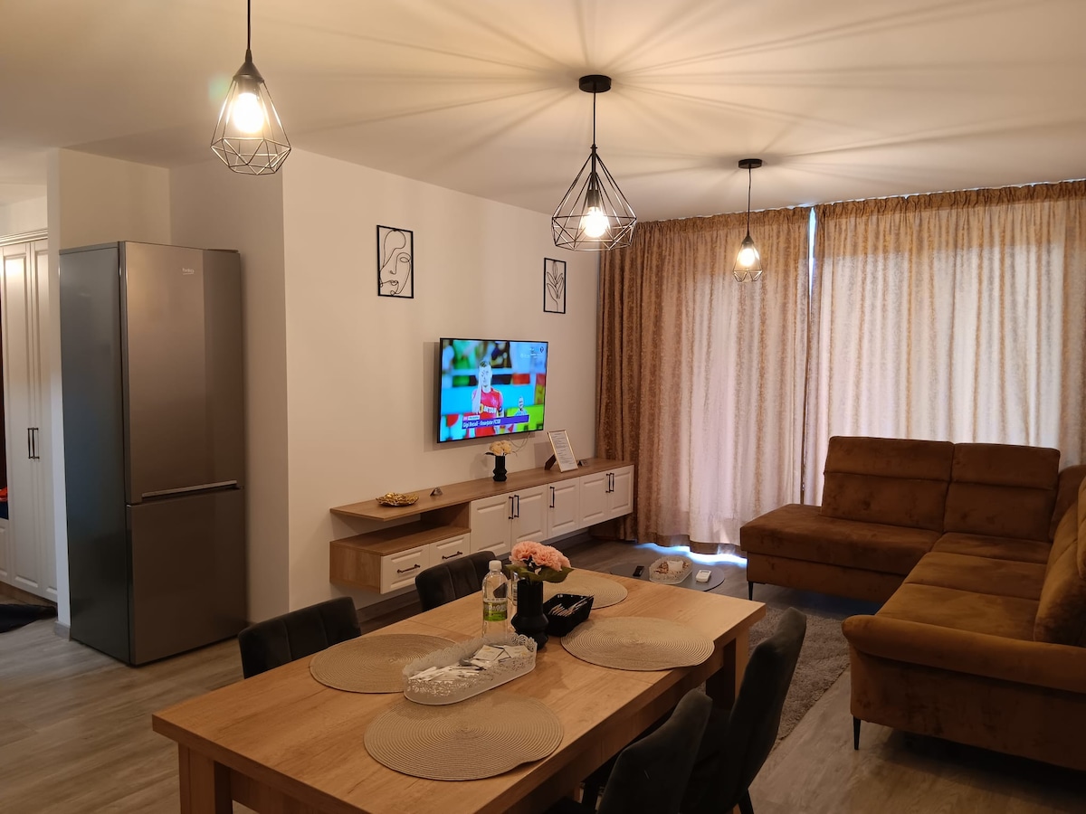 I welcome you to the most beautiful neighborhood in Brasov, located in Coresi Avantgarden rezidential building and it's at 2 min walk from the Coresi Shopping Mall and Decathlon . The flat has a modern bright living room, a fully equiped kitchen, a cozy bedroom with premium mattress, a bathroom with washing machine, a balcony , and private parking place. CLOSE TO: - Poiana Brasov 17 km- Old City Centre 30 min walk, 10 min drive- Dracula Castle 34 km- International airport Brasov-Ghimbav 10 km