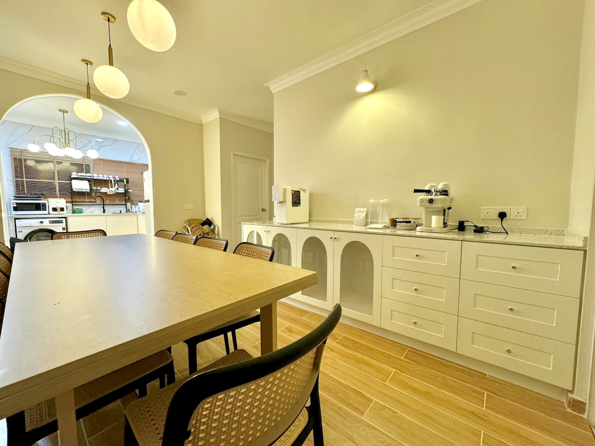 現代英式概念,氛圍寧靜。 全空調4間臥室 3間帶熱水器的浴室 額外的床墊和枕頭 設施: • 提供 Wifi •配有Astro Channel、Sport、Netflix的Android TV •爐具、冰箱、飲水機 • 室外監視器 重要規則: 嚴禁攜帶寵物、豬肉和酒精