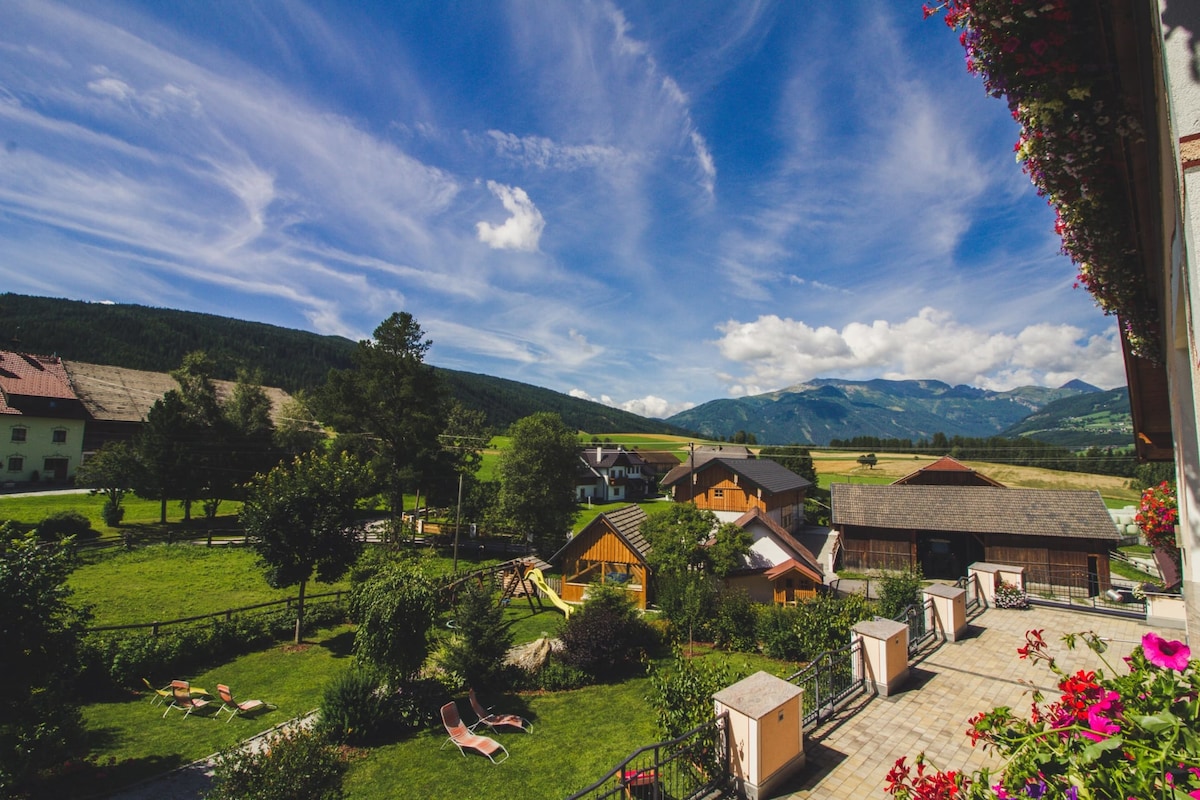 Our organic farm Samerhof is located in the sunniest place in Austria in Salzburg's Lungau. No matter whether you spend your vacation in one of our cozy holiday apartments or in a double room, you will soon relax and enjoy your break from everyday life. Start the day with a rich breakfast or treat yourself to our bread roll service and delicacies from the Bauernkastl. Your vacation will be varied: be it on the farm, with the animals, riding our horses, hiking in the untouched nature in the Salz