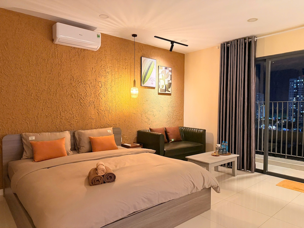 歡迎來到Nina Homes! 我們是一棟新翻修的服務式單間公寓,位於韓國城、富美興市區、胡志明市南部的綠色、樹葉、寧靜和充滿活力的區域。我們的單間公寓(28-30平方公尺)充滿自然光,配有私人陽臺、Electrolux洗衣機/烘乾機和全套廚房,配有基本的廚具/餐具和調味品,滿足您每個房間的烹飪需求。 非常適合短期/長期住宿、商務或旅客。