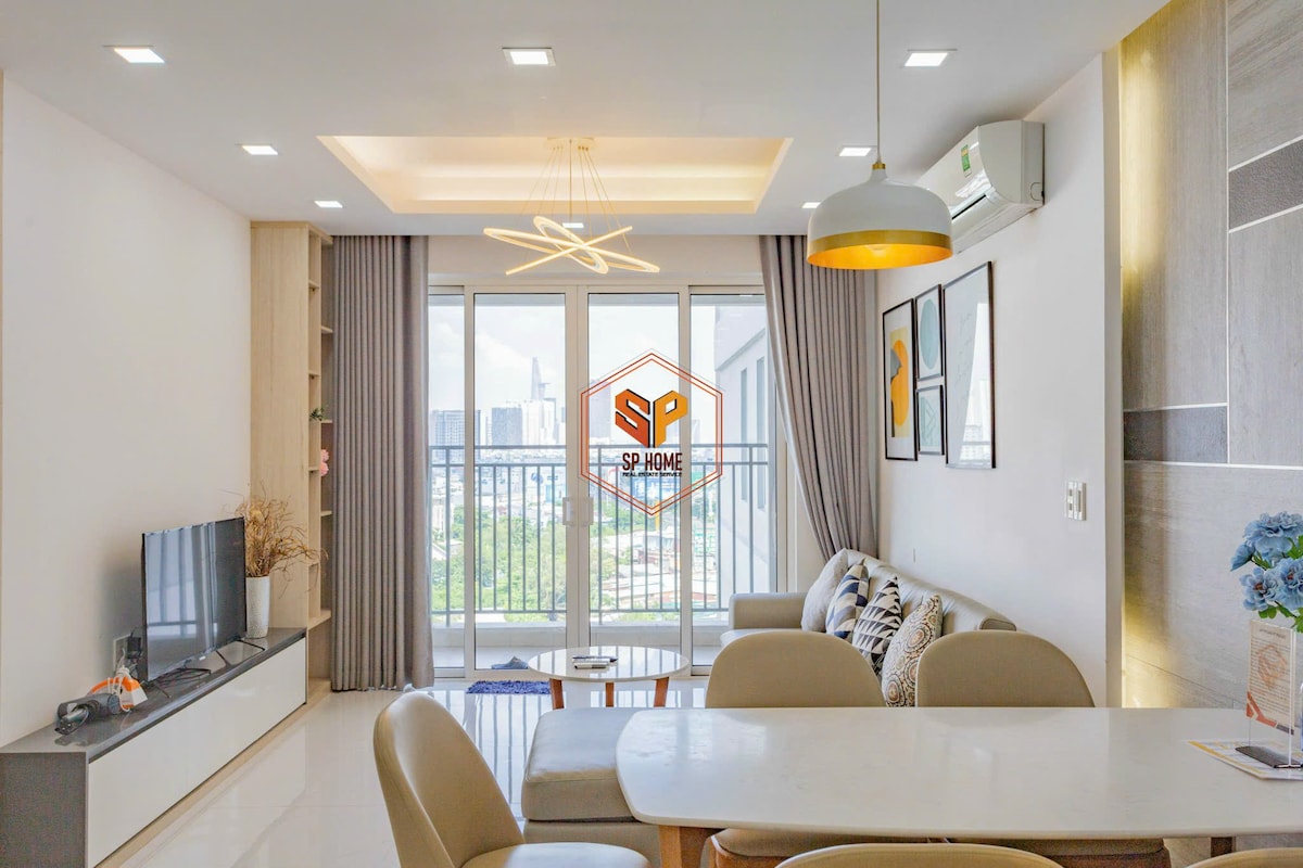 Nestled within an exclusive residential complex in District 7, my apartment offers a refined and tranquil retreat just moments away from the vibrant heart of the city. Perfectly positioned near Lotte Mart, the residence provides effortless access to District 1 and the cosmopolitan Koreatown of Phu My Hung, both approximately a 15-minute drive away.
