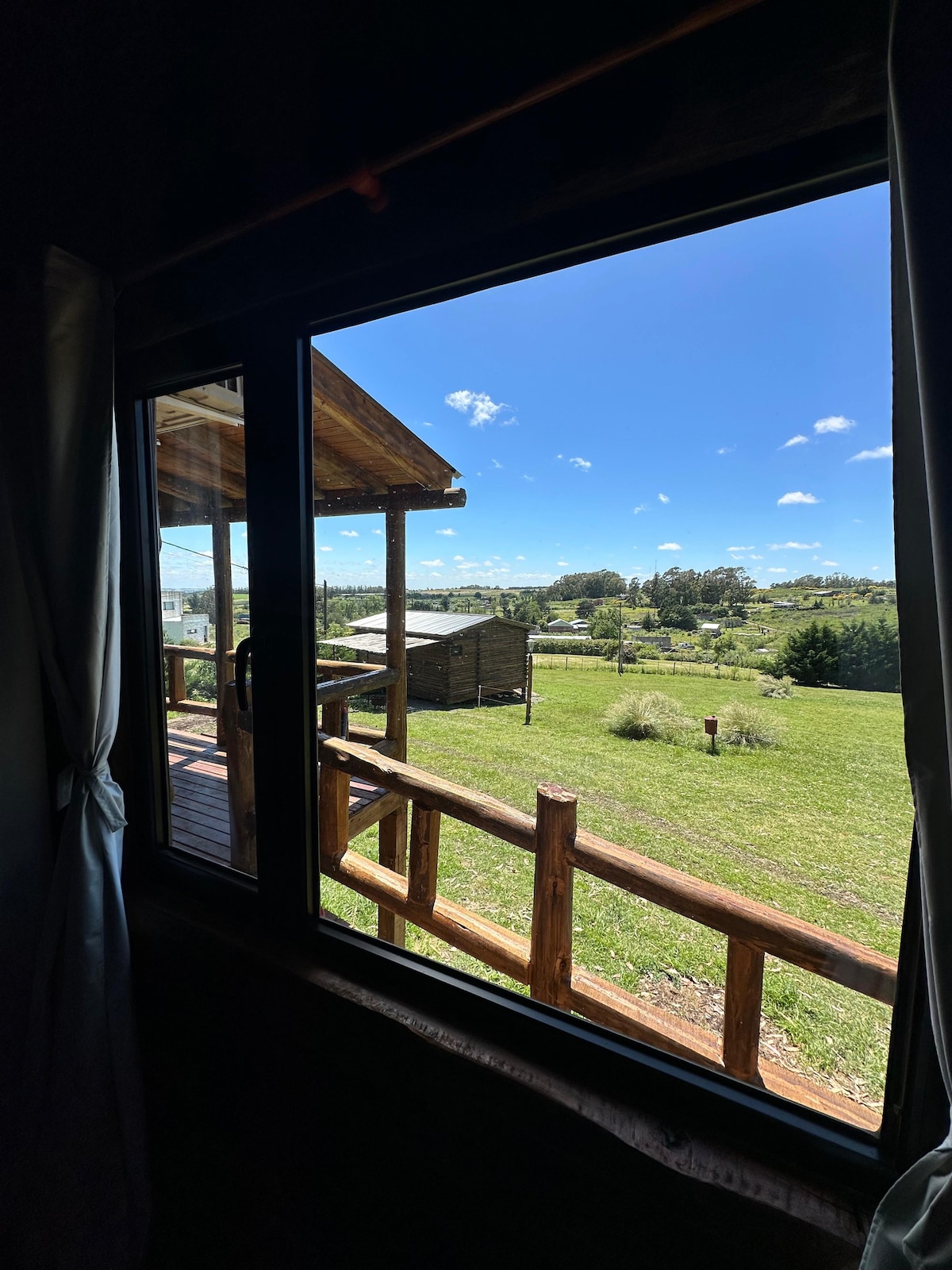The cabin is built of wood, very bright, with a bedroom with a double bed and a TV with basic cable service. A small very complete kitchen. Living * dining room with armchair (to assemble two single beds) and table for 4 people. There is a small patio with a table and wooden benches. We have an electric gate, you enter the property with the car (there is no covered garage). It has a wooden deck where you can enjoy the outdoors