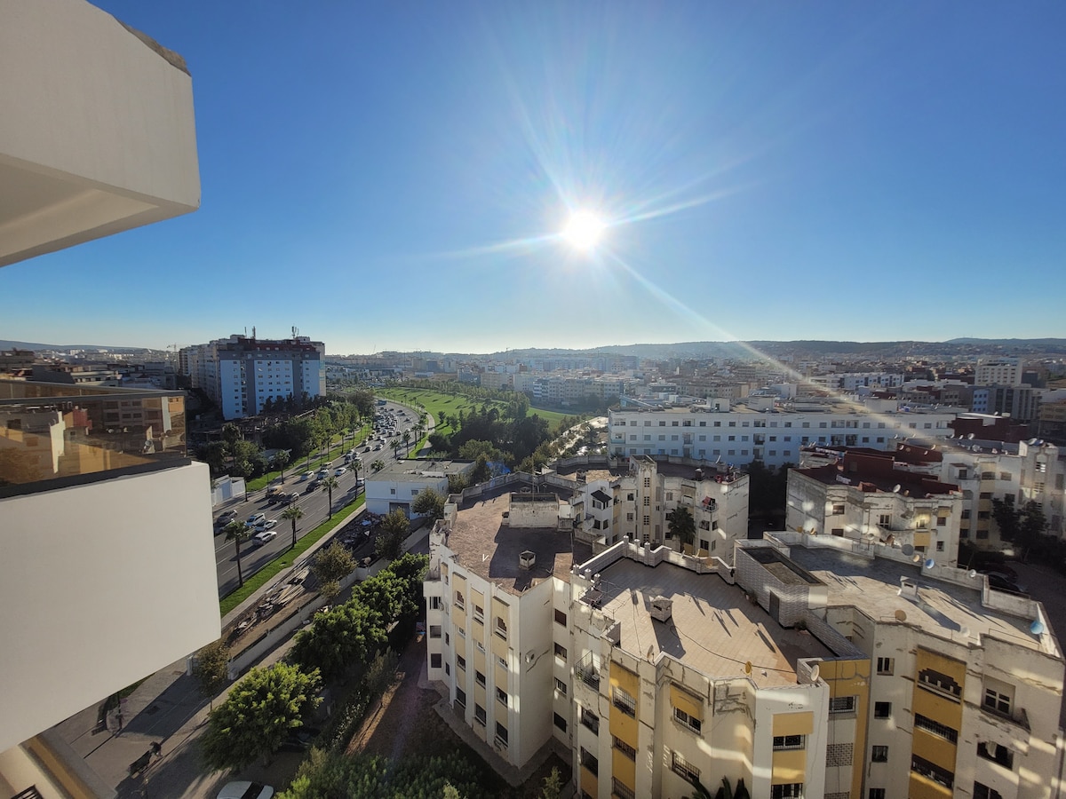 ✨ Enjoy a stay in a luxurious apartment 🏙️ with panoramic views of the sea 🌊 and Spain 🇪🇸. Located in the heart of Malabata, on the lively corniche, just steps from beaches 🏖️, restaurants 🍽️, and shops 🛍️. Modern and fully equipped ✅: air-conditioned living room, open-plan kitchen, 65” TV with Netflix, balcony, Skyview ceilings, solid wood furniture, baby crib, foldable desk, super-fast Wi-Fi, and a small swing for children 🎠.
