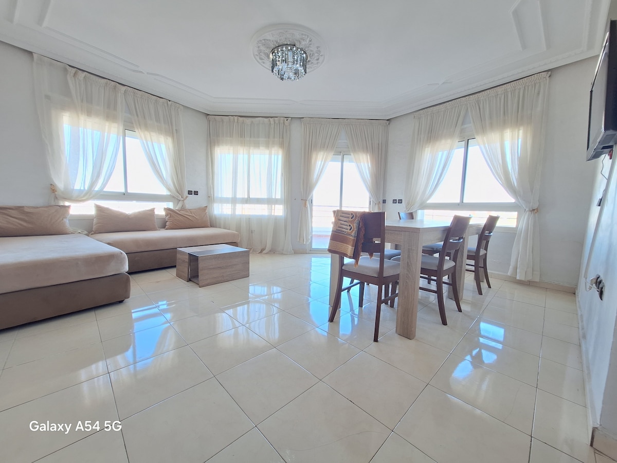 Experience a true beachfront, heart of downtown escape in this spacious 3-bedroom sea-view apt with a private garage and an unbeatable location on Tangier’s Marina Bay Corniche. What you'll love: • Direct access to Corniche promenades. • 135 m² of pure comfort • Fast Wi-Fi & Smart TV • Private garage (rare in this area!) • Fully equipped kitchen • Easy access to taxis & public transport The apt offers the ultimate Tangier lifestyle, perfect for families and friends seeking to discover the city.