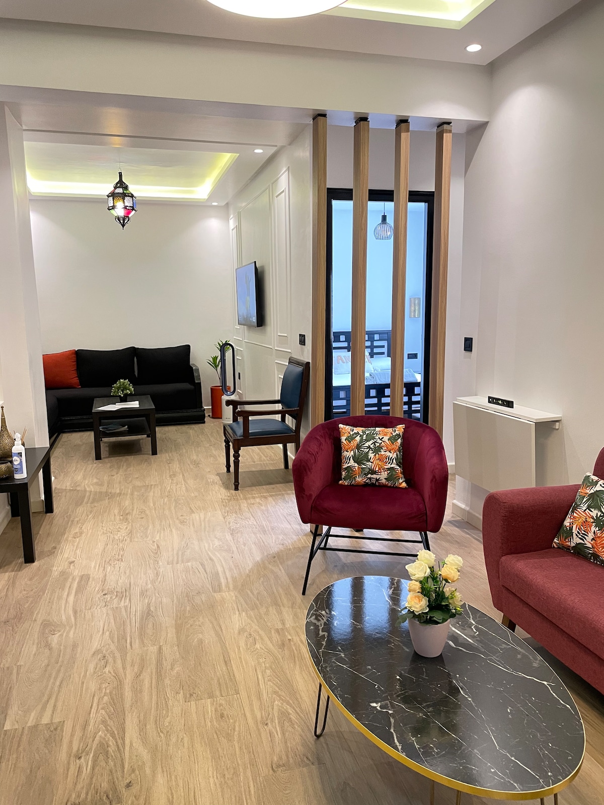 歡迎來到我們位於丹吉爾黃金地區的全新雙臥室公寓。 這間高級房源位於市內最受歡迎的地區之一,提供24小時禮賓服務,步行10分鐘即可抵達火車站、市中心購物中心、Ibn Battuta購物中心和海灘。 它在您的門口提供便利和奢華。 提供私人停車位。公寓提供:光纖WiFi、司機選項和我們的女管家準備的摩洛哥早餐(額外費用)