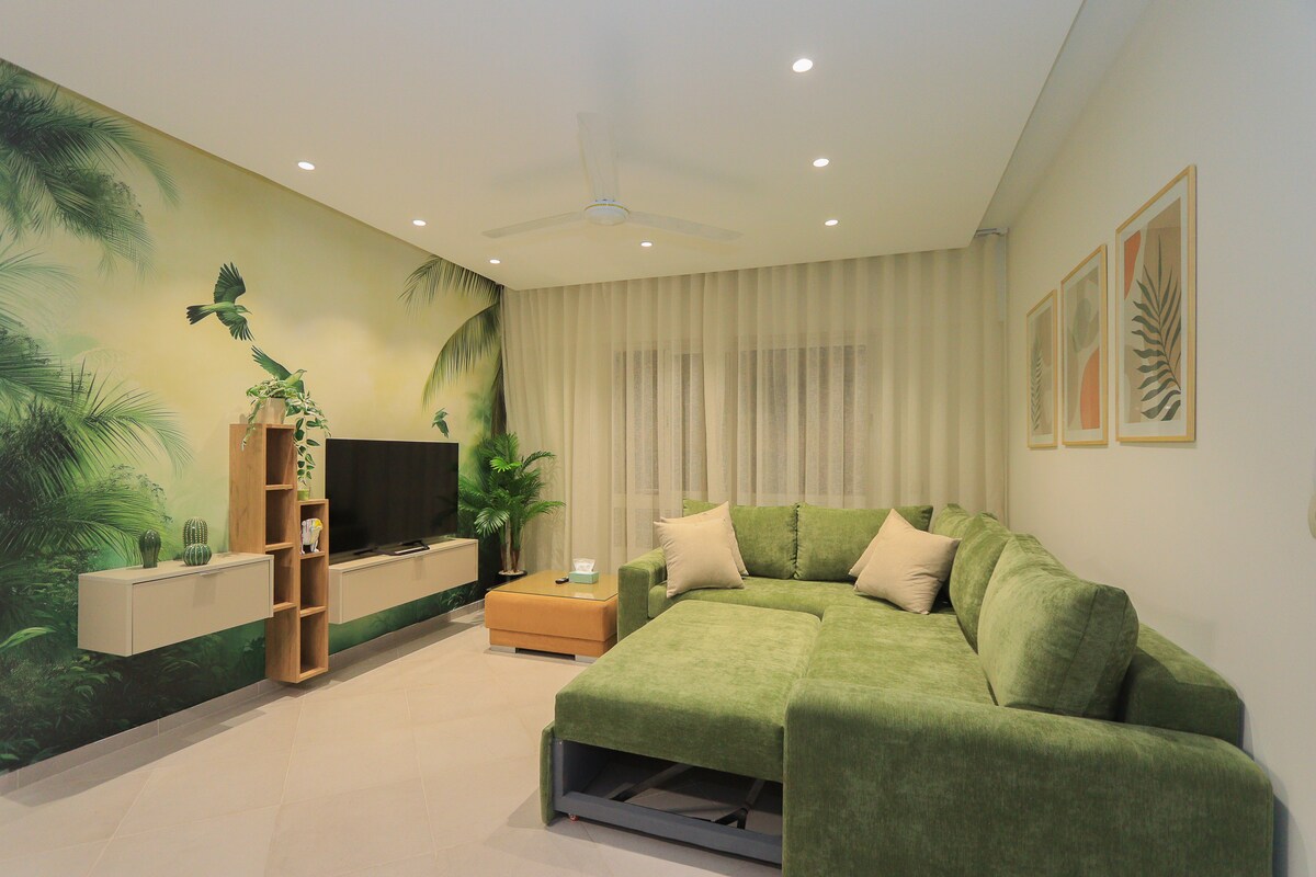 Forget your worries and escape to our serene beach house in Sidi Kankouch. With 5 beds, including a queen-size, it’s perfect for families. Enjoy outdoor dining, BBQ, lush green spaces, tanning chairs, and a terrace with stunning Mediterranean views. Fully equipped kitchen included.