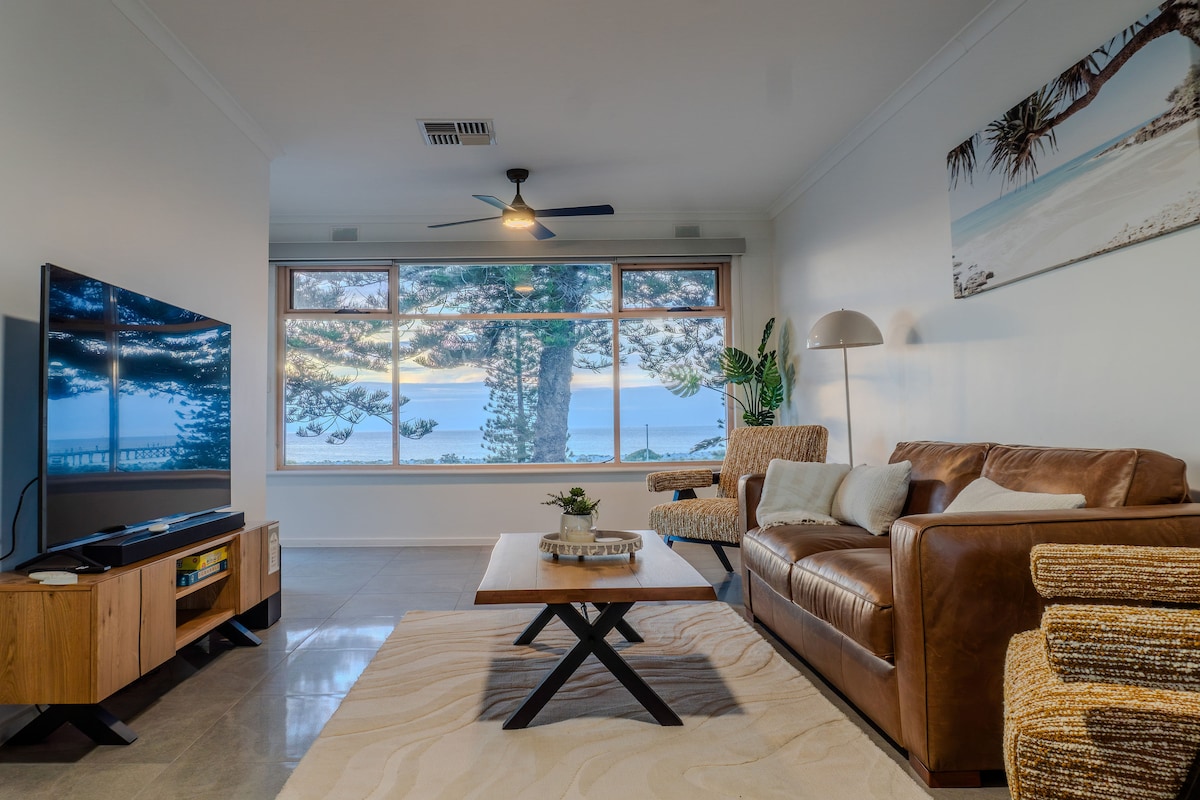 就在海濱或Semaphore對面的街道上,享受沿著海灘的早晨漫步,或沉浸在充滿活力的Semaphore Road村莊氛圍中,這裡有餐廳和週日市場購物。 從經典的炸魚和薯條到Palais Hotel的日落雞尾酒,這裡是海邊生活的最佳選擇。 這間空調公寓融合了迷人的特色細節、輕鬆、寬敞的室內裝潢和風景如畫的露臺,以及一輛車的車道停車位。