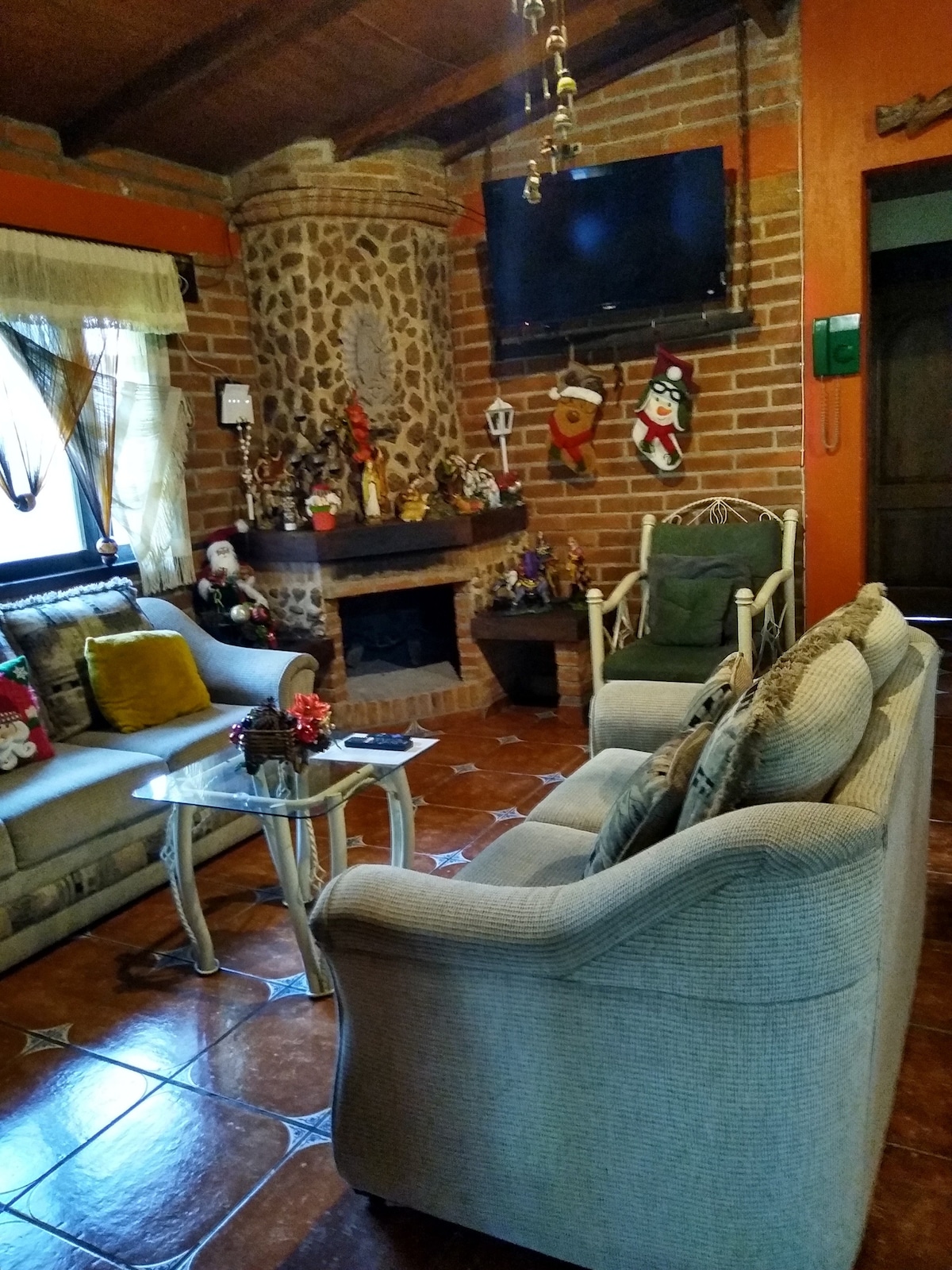 Hermosa cabaña en Tapalpa Country Club. Casa privada con 2 recámaras con baño completo privado y 1 cama queen size cada una, además de 1 tapanco con 2 camas matrimoniales y un baño completo. Sala Comedor y cocina totalmente nuevos y equipados. Wifi TV con SKY y DVD, chimenea, asador, terraza, fogatero privado, además de más de 1,000 metros cuadrados de jardín. Campo de golf de 9 hoyos, casa club con restaurant, billar, bar, terraza y TV.