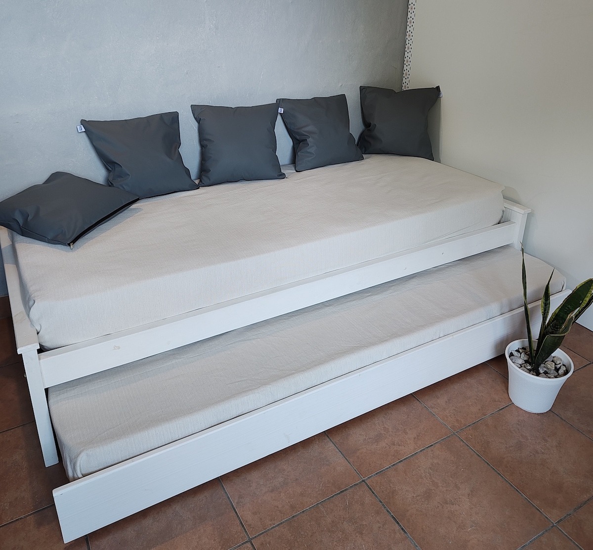 在每間小木屋的室內空間,您會發現一個完整的廚房餐廳。 有餐具、廚房用具 以及頂級電器、電熱水壺、帶保險箱的電烤箱、復古復古冰箱。 還有冷/暖氣、 配備Android和WiFi的智慧電視。 房間適合兩人入住 和四人,視小木屋而定。 獨特且安靜的全套寢具。 有2間臥室的小木屋