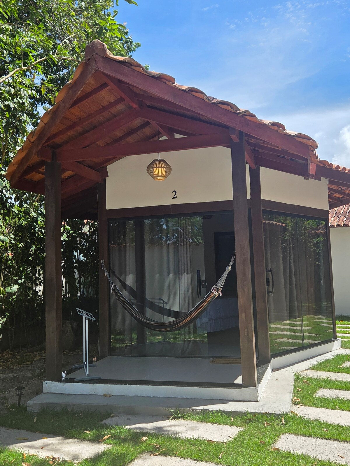 我們的情侶私人套房結合了舒適、美麗和獨特的手工藝氛圍。 這個空間旨在提供數天的休息和健康,周圍有樹木茂盛的庭院、花園和泳池。 套房內: 獨立浴缸 空調 吊扇 *電視 Cama casal 波西米亞時尚裝飾 最重要的是,我們距離海灘500公尺,位於安靜、安全和迷人的地區。