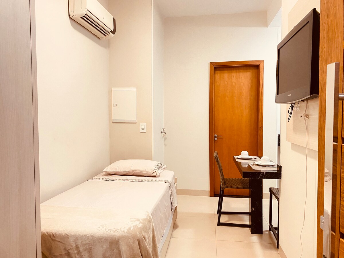 Kitnet compacta e funcional, ideal para estadias práticas e confortáveis. Incluso no espaço: • Roupa de cama e banho Cozinha equipada: • Louças e panelas • Filtro de água Localização excelente: • Próxima a farmácia, padaria, açougue, mercado • Pizzaria e lanchonetes nas redondezas