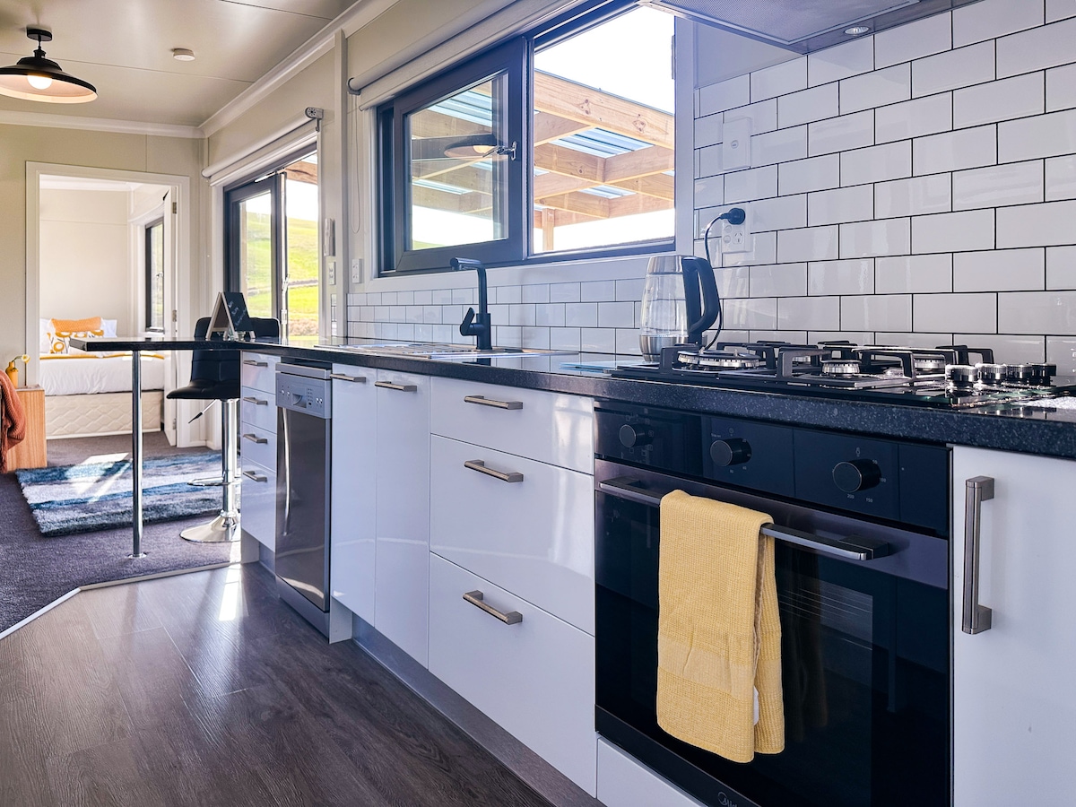 Our Self-Contained Apartment is fitted with modern furnishings, free WiFi and views across the ocean to the Nugget Point Lighthouse from the sliding doors. There is a private deck with a table and seating. The living area has a sofa, dining table and chairs and a flat-screen Smart TV. It has a kitchenette with a stovetop, microwave, electric fry pan, fridge, jug, toaster and all the essentials. The bathroom has a walk-in shower. It has a private entrance and off-street parking.