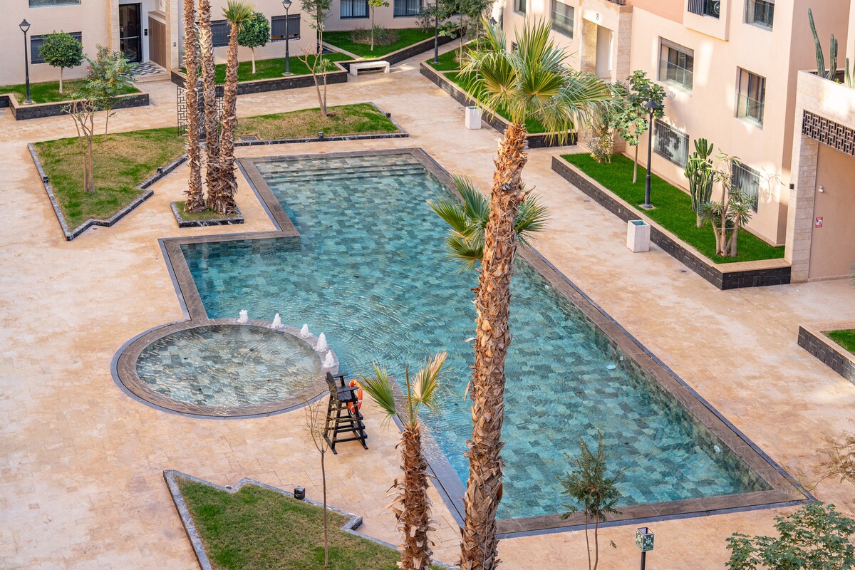 Situé à Marrakech à seulement 5 minutes du centre, cet appartement élégant et lumineux se trouve dans une résidence calme et sécurisée avec piscine. Il dispose d’un salon chaleureux, d’une grande chambre confortable avec fresque murale éclairée et coiffeuse, d’une cuisine ouverte entièrement équipée, d’une salle de bain moderne et d’un balcon avec vue sur la piscine. 📍 Emplacement idéal, proche des attractions, tout en offrant un cadre paisible ➡️ Parfait pour un séjour détente à Marrakech