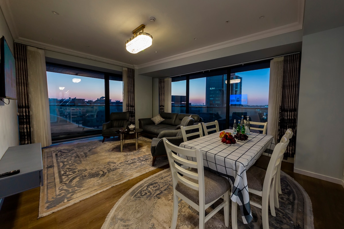 在塔什干市中心享受時尚的住宿體驗,在俯瞰塔什干市的公寓中。 靠近塔什干城市公園、魔法城,有很多餐廳。 臥室有空調。 特大床、設計師室內裝潢、設備齊全的廚房、咖啡機、空調和可俯瞰塔什干市景觀的陽臺。 房源內:接待處、共同工作空間、健身室、觀景台。 非常適合商務差旅和浪漫週末。 公寓和共同工作空間內有高速 Wi-Fi。