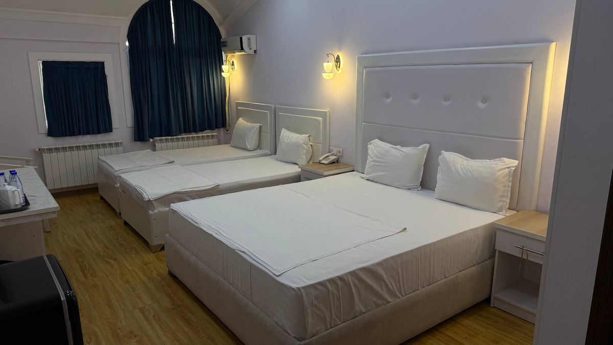 Hotel Queens 2 Уютные номера для вашего комфорта! Ищете идеальное место для отдыха? Мы предлагаем вам современные номера с комфортом и удобствами! Наши услуги: - Чистые и стильные номера - Бесплатный Wi-Fi - Питание и чайные принадлежности - Удобное расположение в центре города - Вкуснейший завтрак - Бесплатная парковка - 10 минутах от Аэропорта и от Метро Ойбек