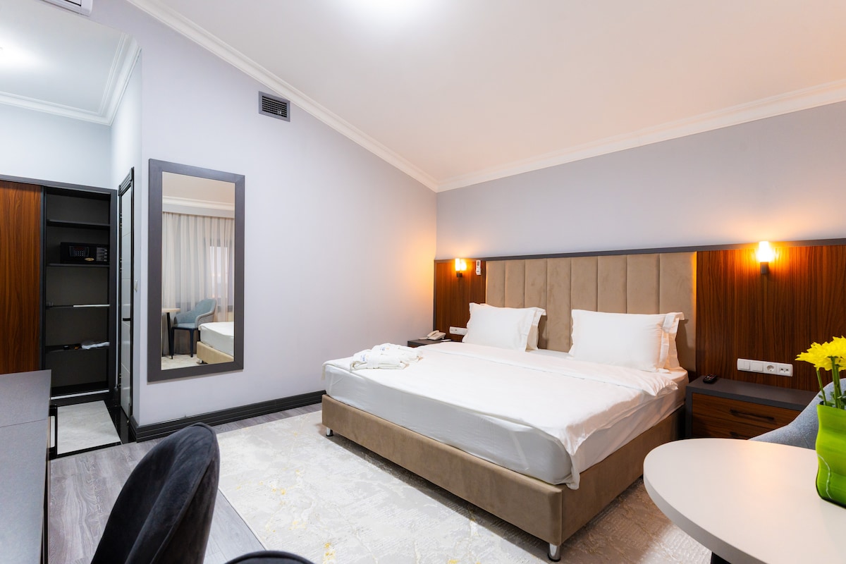 Hotel Queens 2 Уютные номера для вашего комфорта! Ищете идеальное место для отдыха? Мы предлагаем вам современные номера с комфортом и удобствами! Наши услуги: - Чистые и стильные номера - Бесплатный Wi-Fi - Питание и чайные принадлежности - Удобное расположение в центре города - Вкуснейший завтрак - Бесплатная парковка - 10 минутах от Аэропорта и от Метро Ойбек