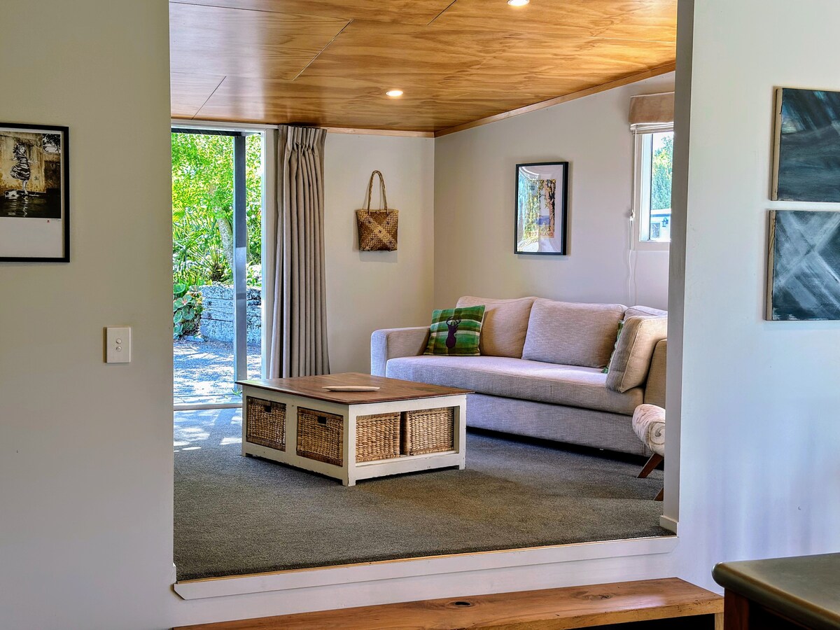 We welcome you to our peaceful retreat: a modern, spacious guesthouse in Lower Moutere. The perfect base from which to explore the region, just five minutes from Motueka township, 20 mins from Kaiteriteri and 500 metres from the Great Taste Trail. Relax in style with peace and privacy and a view of lush, expansive gardens. You'll have ample parking for cars and bikes, access to Wi-Fi and smart TV, comfortable beds, a full bathroom, and a well-equipped kitchen.