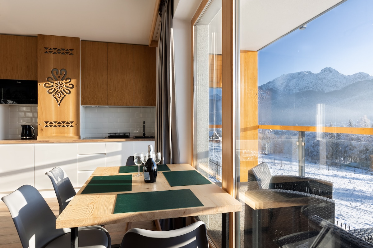 在這個設計時尚又安靜的地方好好放鬆身心。 坐在陽台上,深呼吸一杯在公寓內製作的新鮮咖啡。聆聽鳥鳴,欣賞整個塔特拉山脈的全景。或者直接躺在壁爐旁的木地板上。 在冬天,您可以穿著滑雪板到達滑雪場;在夏天,步行和徒步旅行路徑從公寓後面的森林開始。