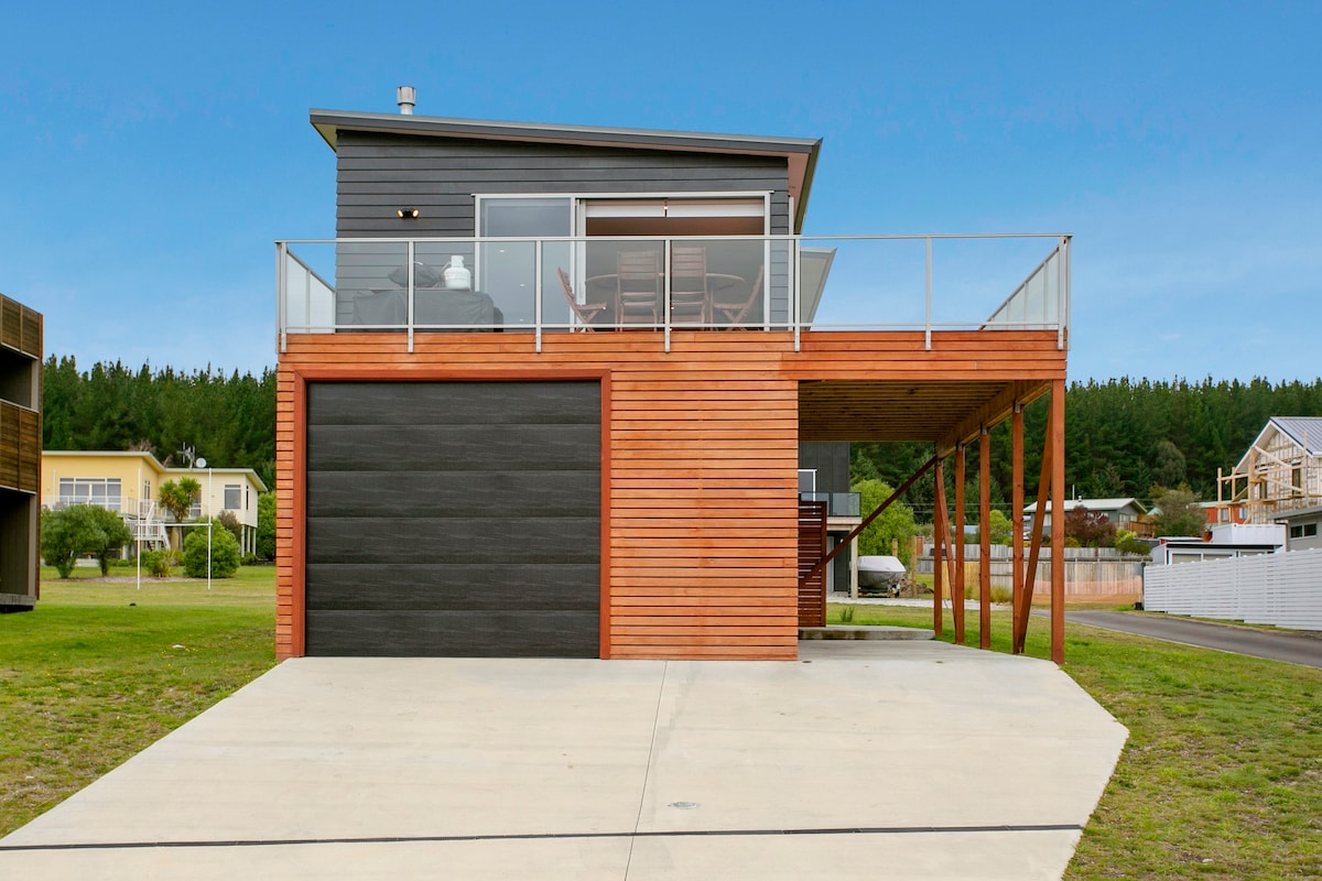 我們在Motuoapa的建築獎項得主房源,可欣賞湖景,靠近湖的南端。建於2007年,距離Whakapapa滑雪場45分鐘,靠近許多鱒魚釣魚河,距離陶波湖的Motuoapa碼頭和船坡道500公尺。 有3個熱泵式空調和一個瓦斯爐,讓您舒適。 房源距離陶波(Taupo)30分鐘,靠近Turangi (Airbnb在陶波(Taupo)搜尋中顯示)