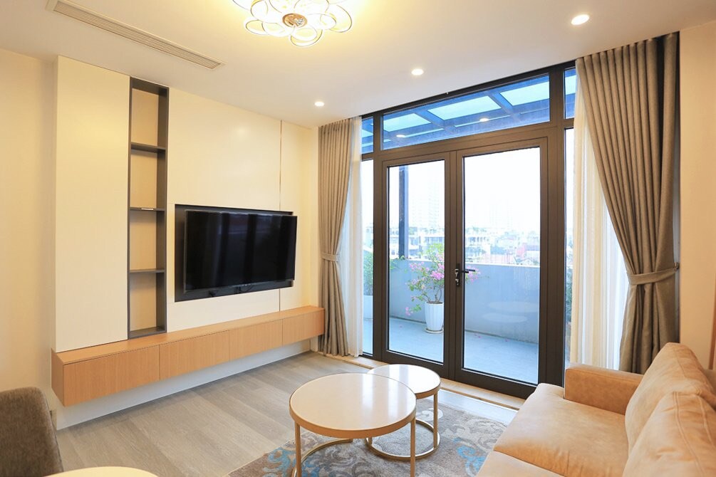 - 110m2 furnished penthouse directly facing West Lake/Wealthy neighborhood - 7-minute ride/drive to city center - Onsite staff available 24/7 - 3 free cleaning sessions/week - Private bathtub and sauna - Garage and elevator - Spacious private outdoor dining and recreational area (including outdoor mini golf) - 24/7 security guards and security cameras - Restaurants, pubs, bars, clubs, shopping malls, gyms, swimming pools, convenience stores, and supermarkets are within a 5-minute walk