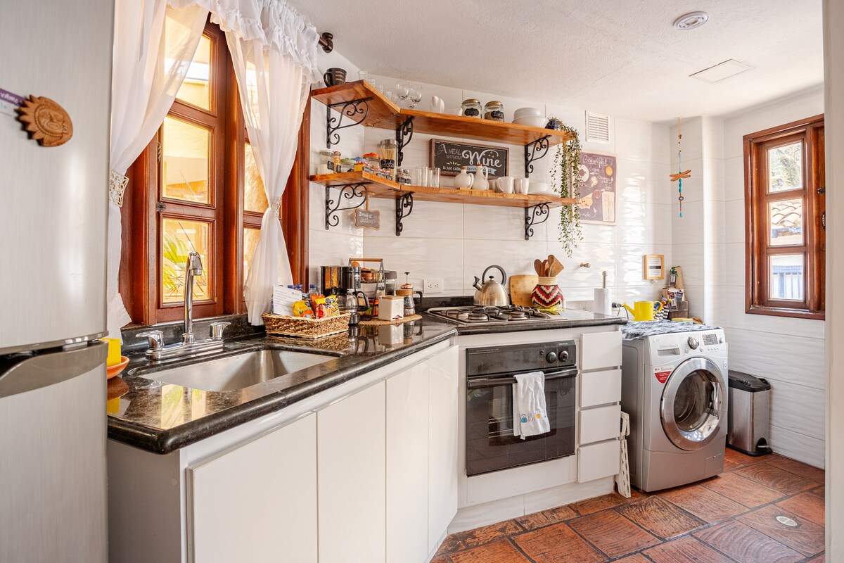 獨特的住所,有兩個露臺,很棒很安靜,位於波哥大市中心,歷史悠久的La Candelaria區。靠近博物館、文化場所、餐廳和充滿活力的夜生活。 7th heaven是一間位於歷史悠久的老房子的公寓,有400年的歷史,配備迷人住宿所需的一切設備。 配備高速WiFi、配備DirecTV的電視和配備NetFlix的Apple TV。洗衣機和烘乾機、廚房、冰箱、烤箱、餐具、碗盤和烹飪鍋。