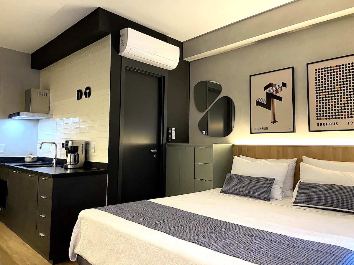 Este lugar único tem um estilo próprio. Curta uma experiência elegante neste lugar bem-localizado, ao lado do parque Augusta, com vista, a uma quadra do Mackenzie e praça roosevelt. Ótima localização! Perto de tudo e seguro! Ao lado metrô Higienópolis Mackenzie! O studio é estiloso, assinado por escritório de arquitetura, todo pensado para receber bem. O prédio é completo, com piscina, rooftop vista panamorica, lavanderia, academia e mercado.