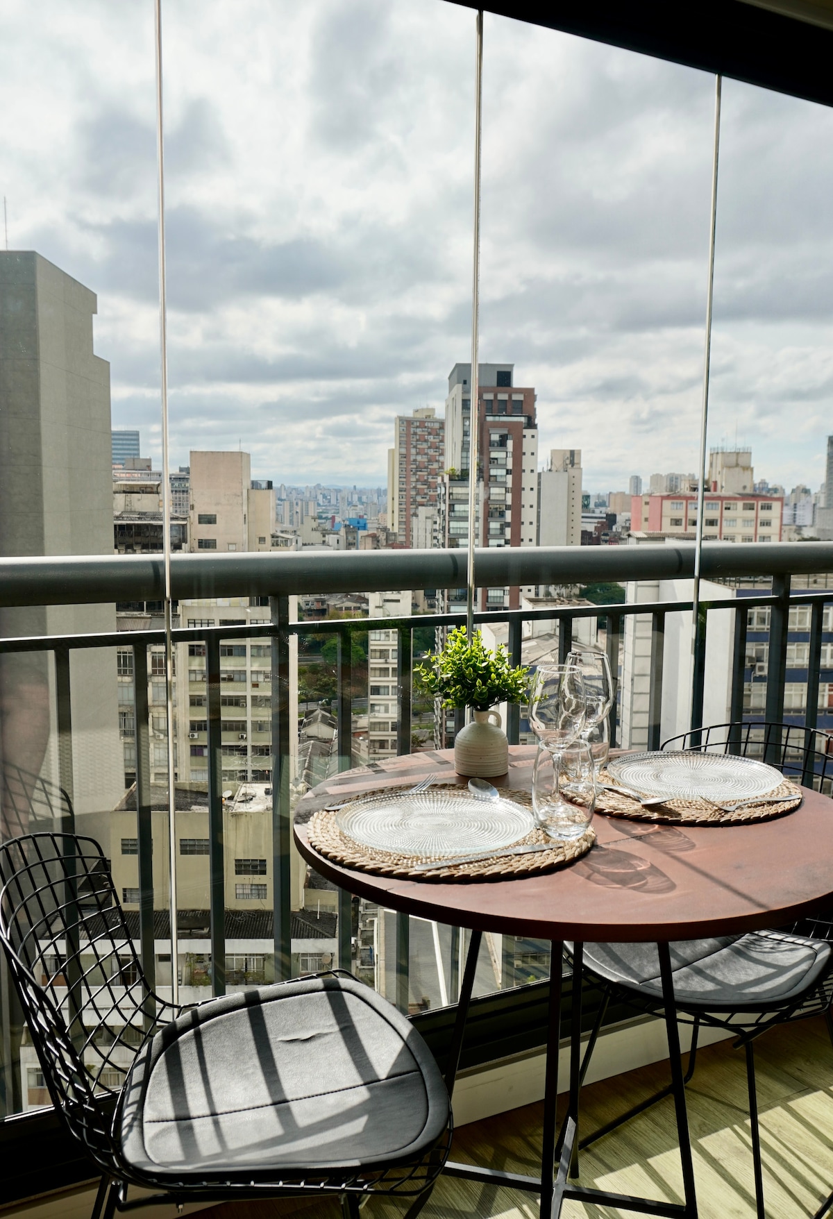 O studio fica no 31º andar do edifício mais alto do centro, com um design moderno e acolhedor, além de uma vista impressionante da cidade. Da janela, é possível admirar o Vale do Anhangabaú, Centro Histórico, as antenas da Av. Paulista: uma das paisagens mais belas de SP. É o prédio onde fica o SampaSky e é possível caminhar para as principais atrações do centro. Conta com ar condicionado, TV de 55'' com apps, cozinha equipada com utensílios básicos, cooktop (1 boca), microondas e frigobar.