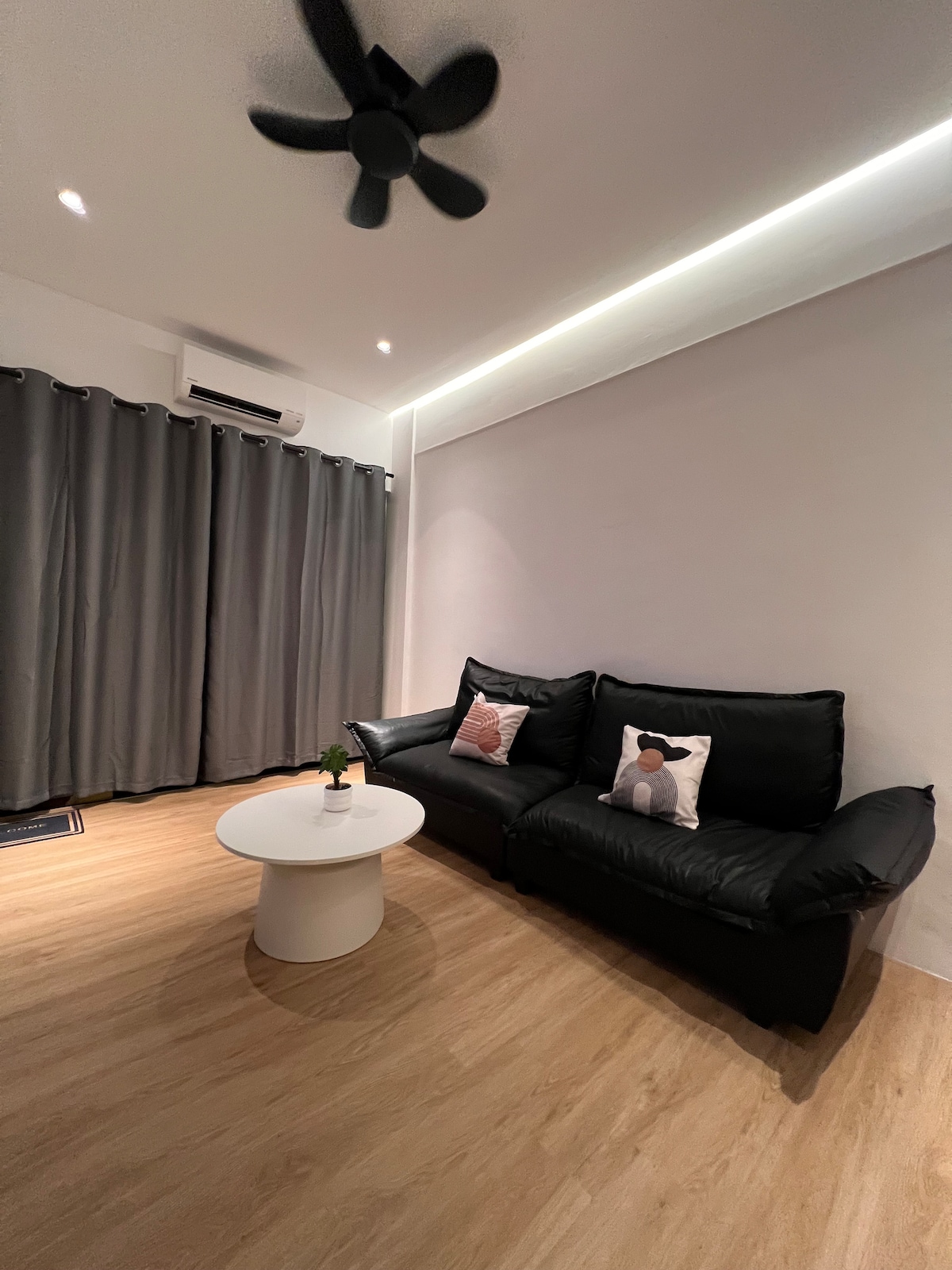 A cozy studio apartment with a modern minimalist style, perfect for couples who are travelling & looking for a cozy vacation stay or getaway near the beach. We aim to offer a comfortable, convenient and clean place to stay for our guests. Located near PD Waterfront with rich amenities nearby (Supermarket TF, McD, Starbucks,Kenny Rogers etc,.) The apartment is furnished with essential furniture, private balcony, Wifi, light entertainment(TV) & complimentary snacks, coffee&tea.