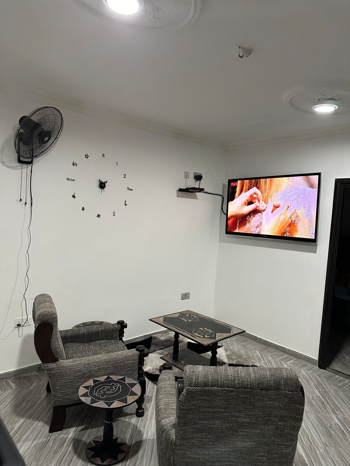 65英寸4k超高清三星電視、家庭影院系統、8個座椅沙發、空調、備用風扇。距離海灘15分鐘。距離Tema商場10分鐘車程,距離餐廳3分鐘車程,隔壁洗衣房,距離ATM機6分鐘車程,附近外匯局、醫院、藥店、雜貨店,距離農民市場3分鐘車程,距離警察局5分鐘車程,提供送餐服務。 外面全是保安燈