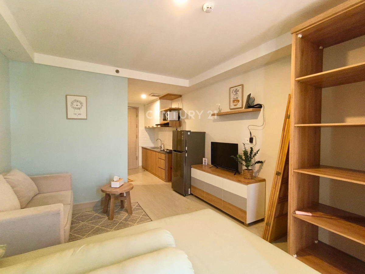 這間單間公寓由您的真正設計,讓您在日惹市感到賓至如歸。 這個房間配備您所需的一切,一張大牀,配有大沙發、高速WiFi和電視。 公寓大樓設施齊全;遊泳池、兒童遊泳池、兒童遊樂場、健身房、免費停車位、迷你超市、沙龍、餐廳、共同工作空間、咖啡廳、洗衣服務。 地理位置優越,靠近日惹的許多好去處!