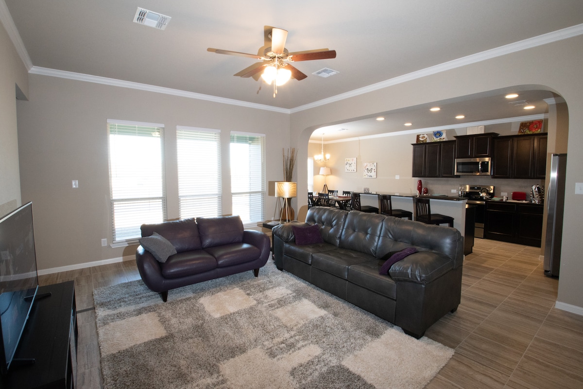 Welcome to our brand-new 3-bed, 2-bath house perfect for 8 guests! Located near the bustling Baylor Scott & White medical district and Temple College, our modern and stylish home offers comfort and convenience. Enjoy spacious rooms, well-equipped kitchen, and easy access to local attractions. Less than 10 minutes fro Lions Junction Water Park and walking trails. Enjoy shopping and dining just around the corner with countryside views in your backyard. Book now for an unforgettable stay!