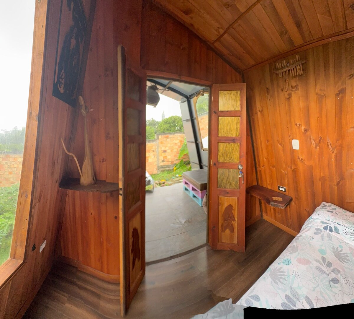 cabaña nueva Relájate en este espacio tan tranquilo y elegante. cuenta con las comodidades como agua caliente cama doble, sofá cama, cocina integral sala al aire libre, balcon cubierto y un buen parqueadero zona para fogata y sugerencia de mejora. por ahora están incompletas las fotos.