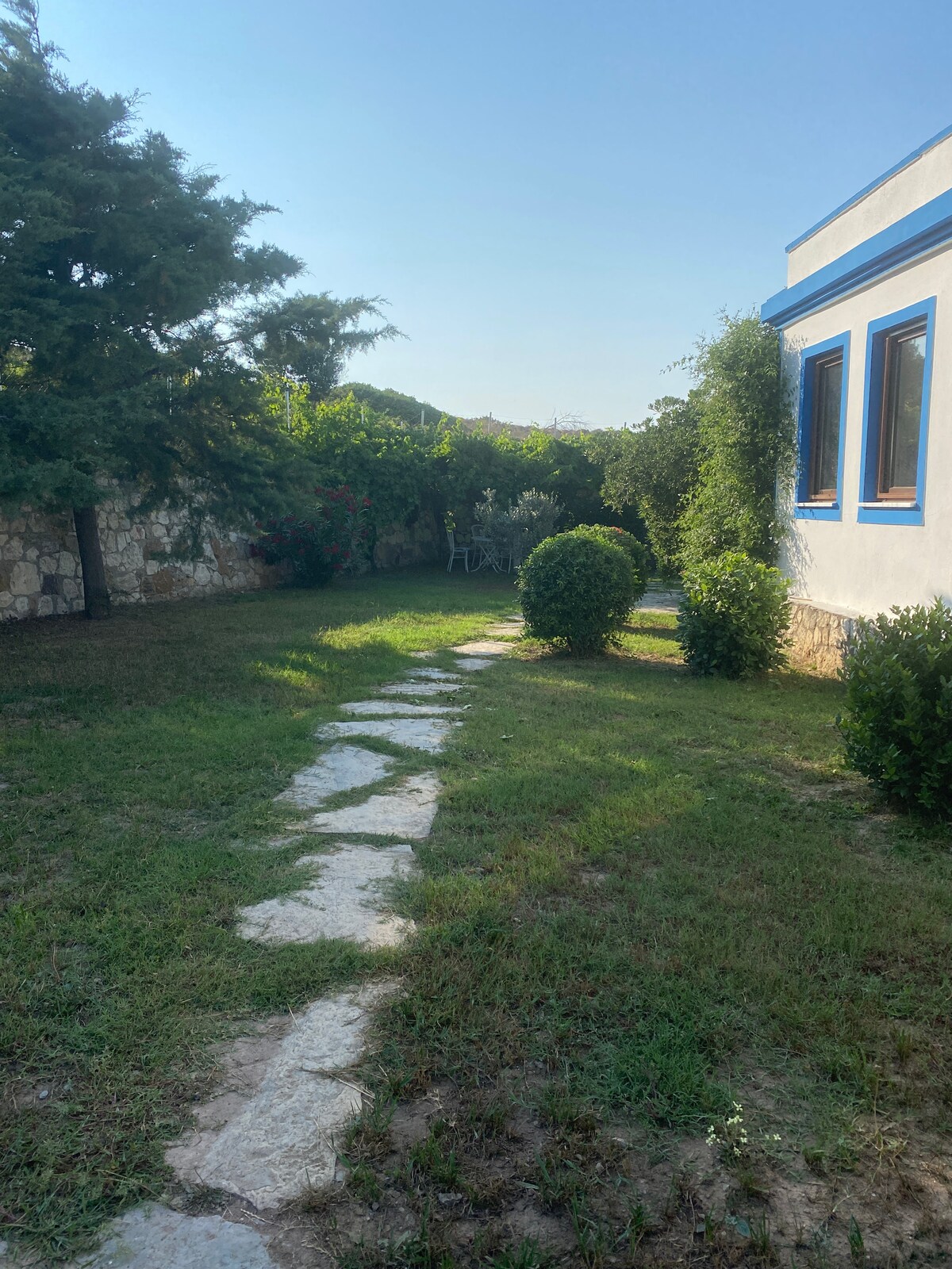 這是總共15英畝土地上的六棟房子之一,有9英畝的葡萄園。 這是一個舒適的地方,您可以享受寧靜、平靜、愉快的假期,欣賞葡萄園和海景。 開車5分鐘,步行約半小時即可抵達市中心。 我們還有一隻名叫Safiye的狗和我們住在一起。 非常溫順和人性友好。我們無法聯絡上Safiye ,他們唯一的渴望就是被愛。 因此,我們的房源不適合有狗恐懼症的人。