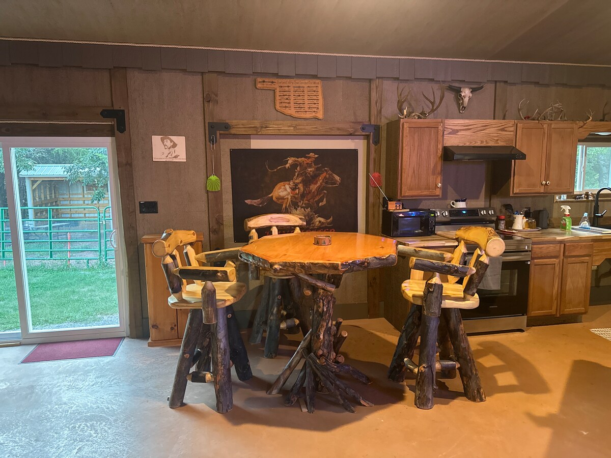 奧克拉荷馬奧塞奇山的美麗、真正的原木屋。 安靜祥和的區域,有華麗的日出和日落! 周圍有馬、牛、山羊和許多其他類型的農場動物。 優秀的道路,適合騎自行車和悠閒、放鬆的駕駛。 友善的人們在鄉村享受生活-就像你抵達時一樣! 這是一個和平與放鬆的目的地。 距離塔爾薩市中心僅15分鐘路程。 開車前往塔爾薩或奧塞奇郡的任何地方都很方便。